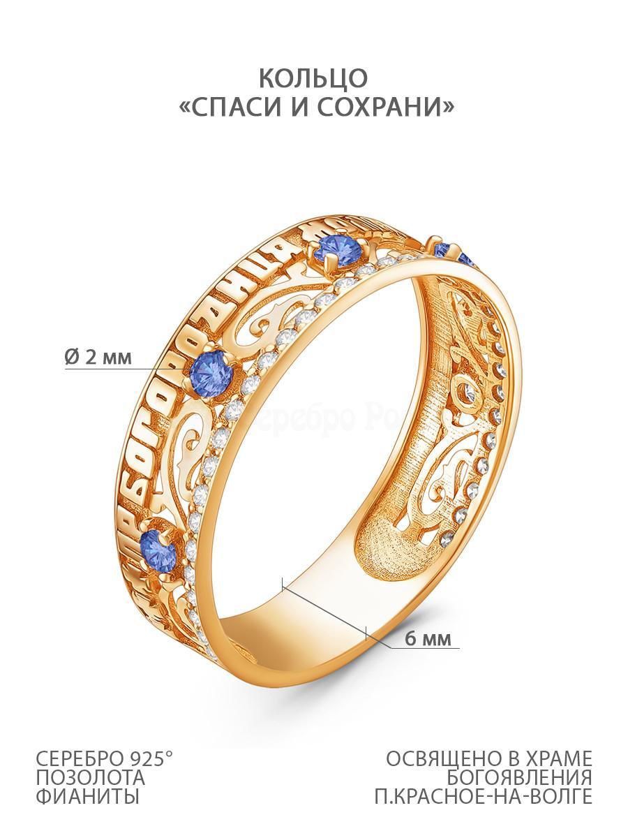 Кольцо из золочёного серебра с фианитам - Спаси и сохрани