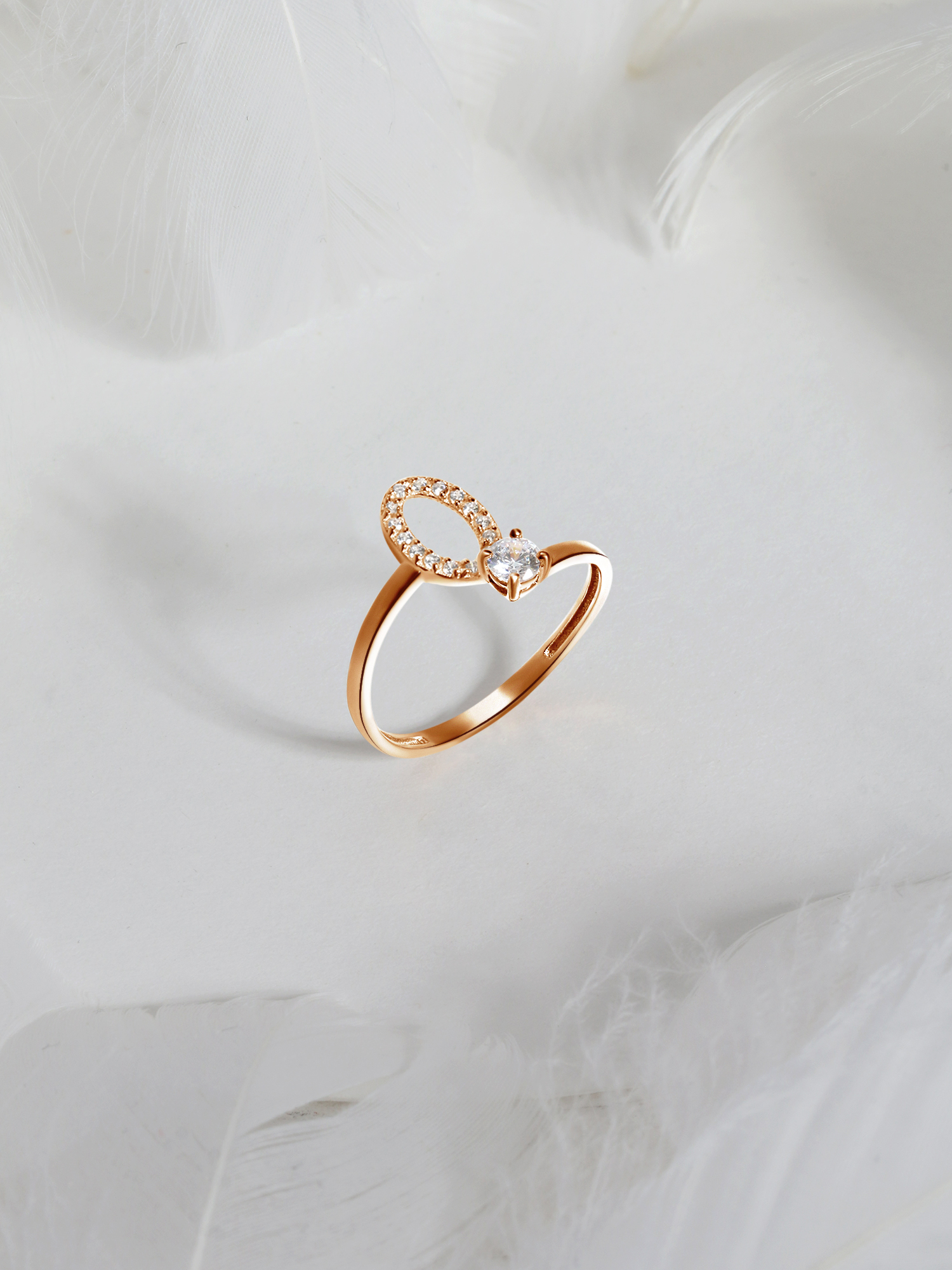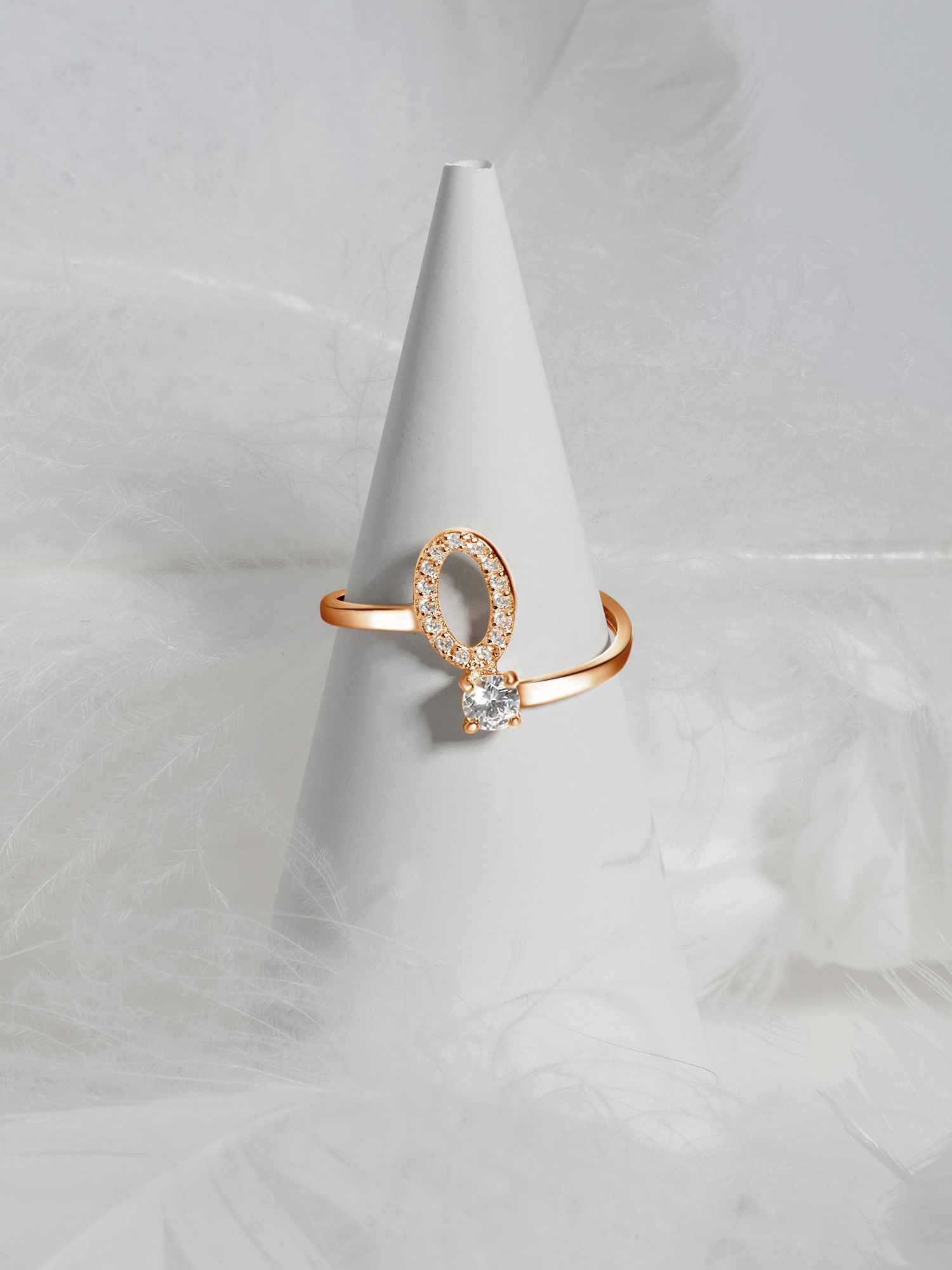 Кольцо из золочёного серебра с фианитами - буква "О"