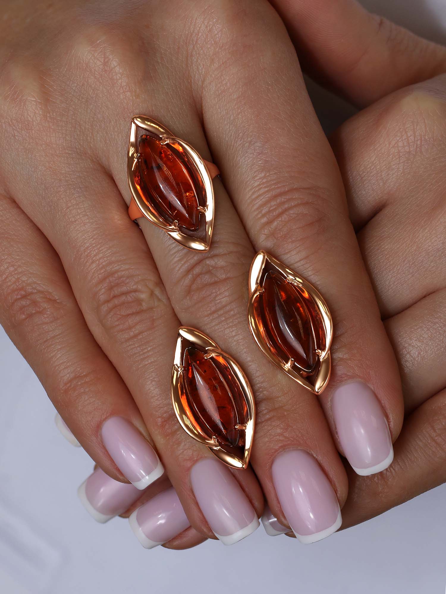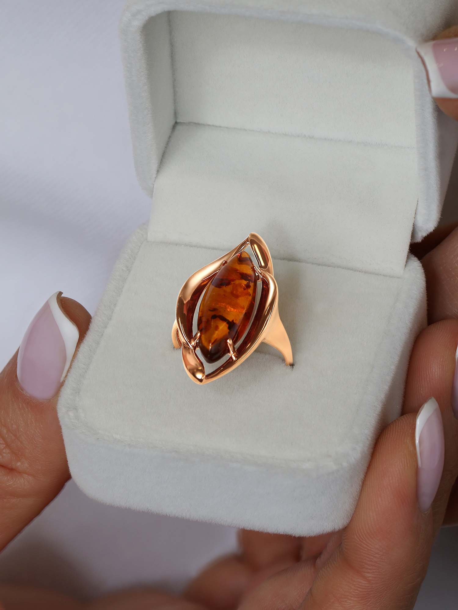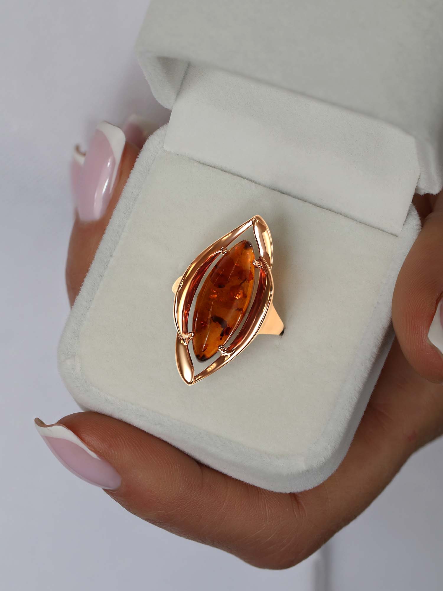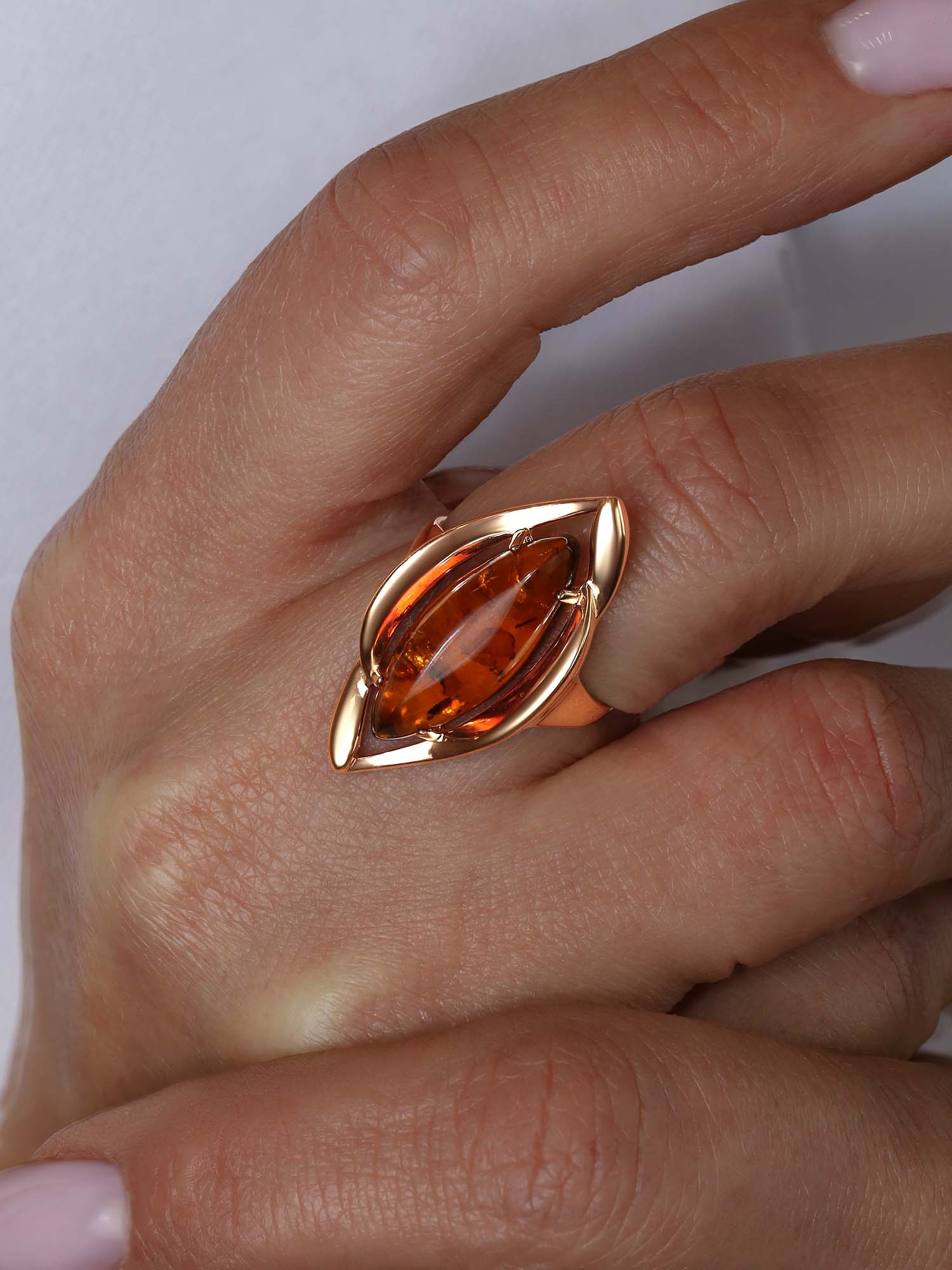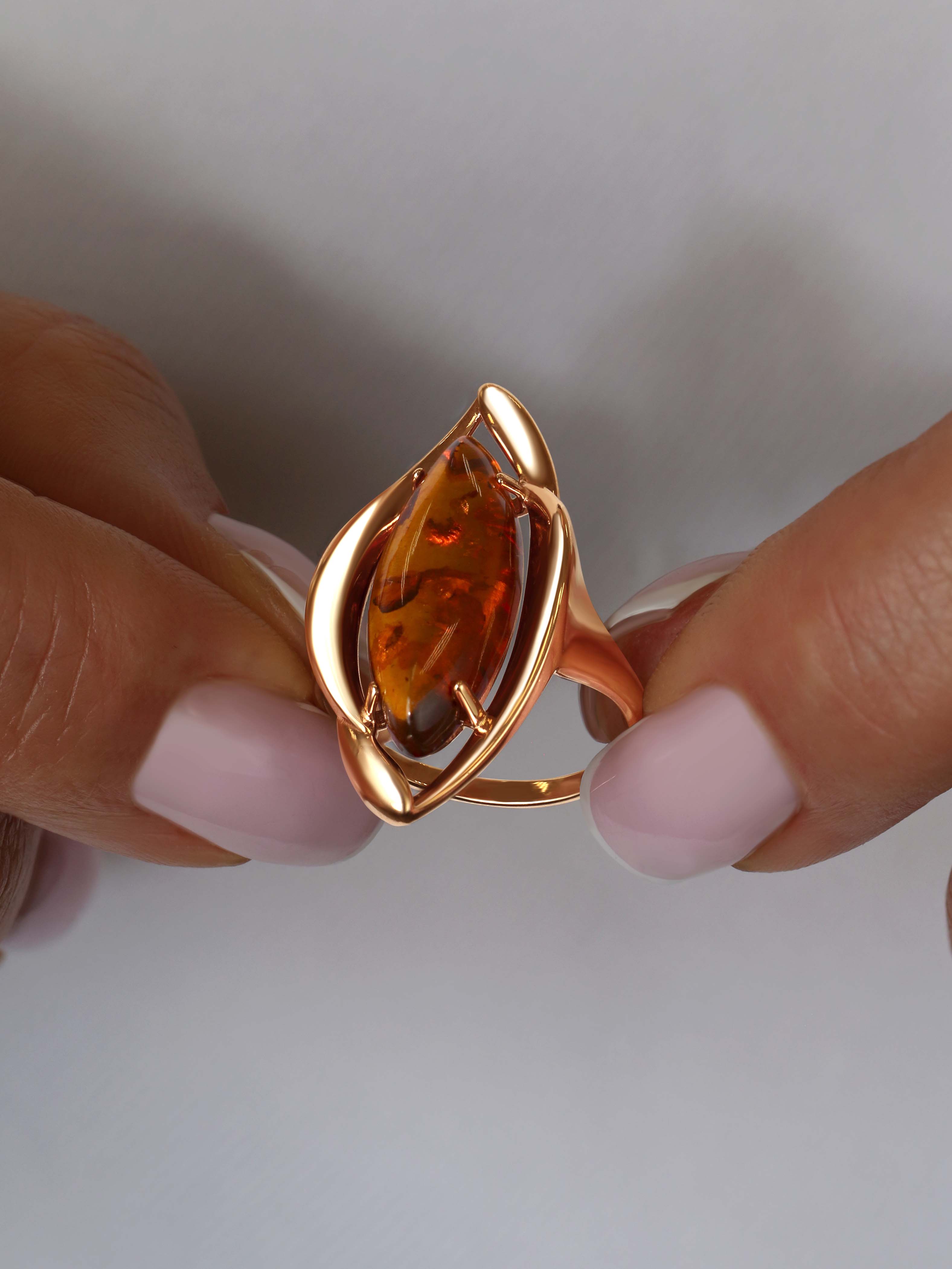 Кольцо из золочёного серебра с коньячным янтарём