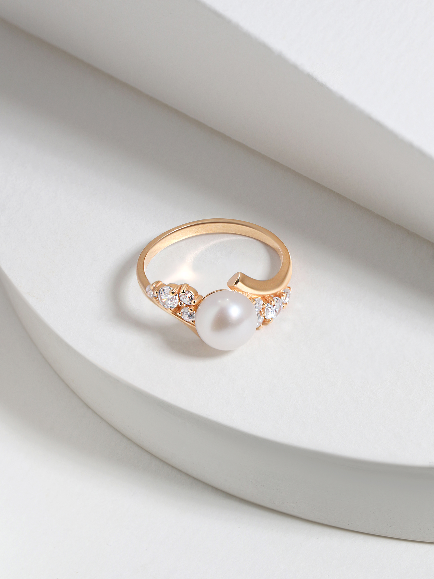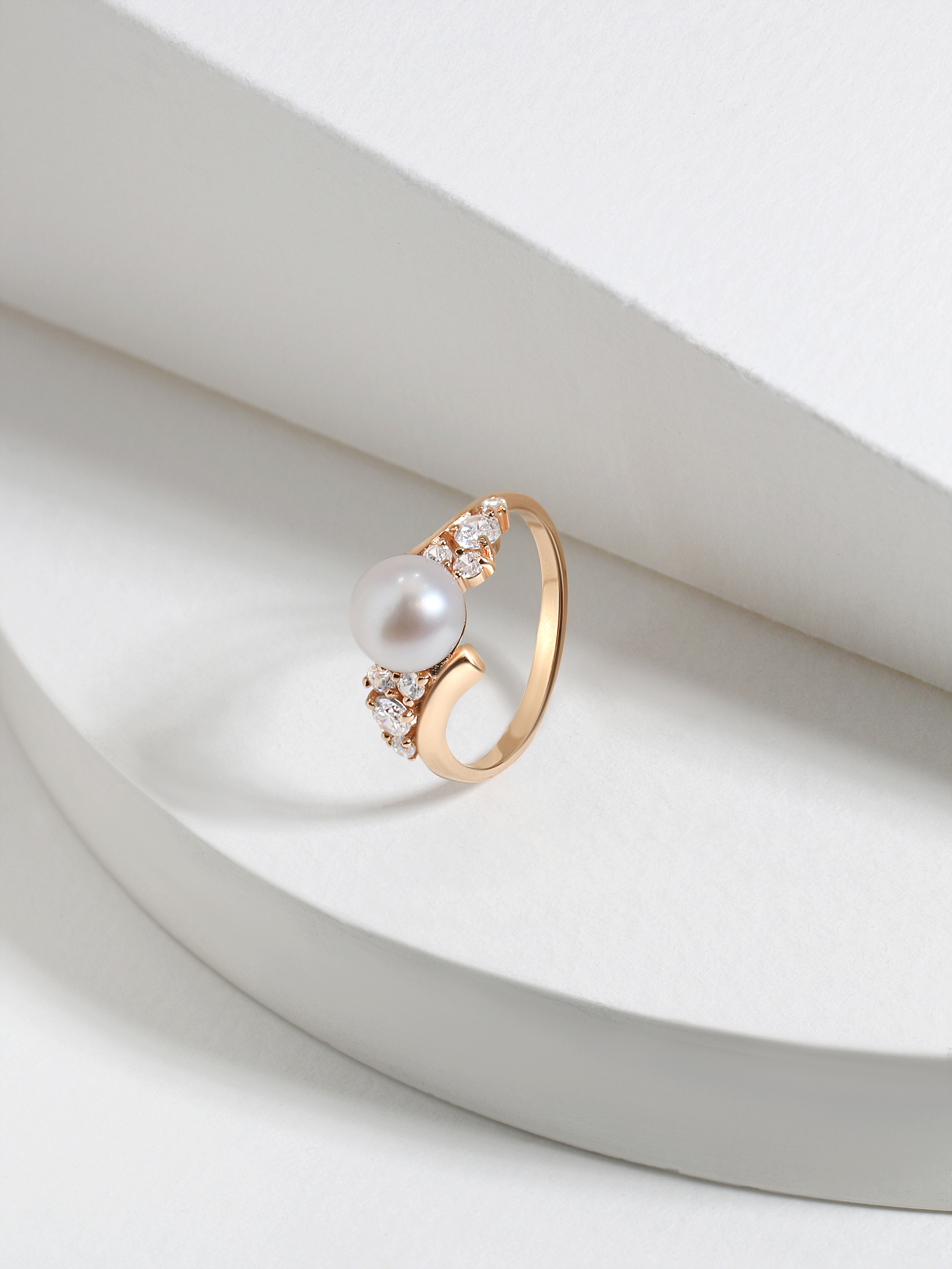 Кольцо из золочёного серебра с культ. белым жемчугом и фианитами