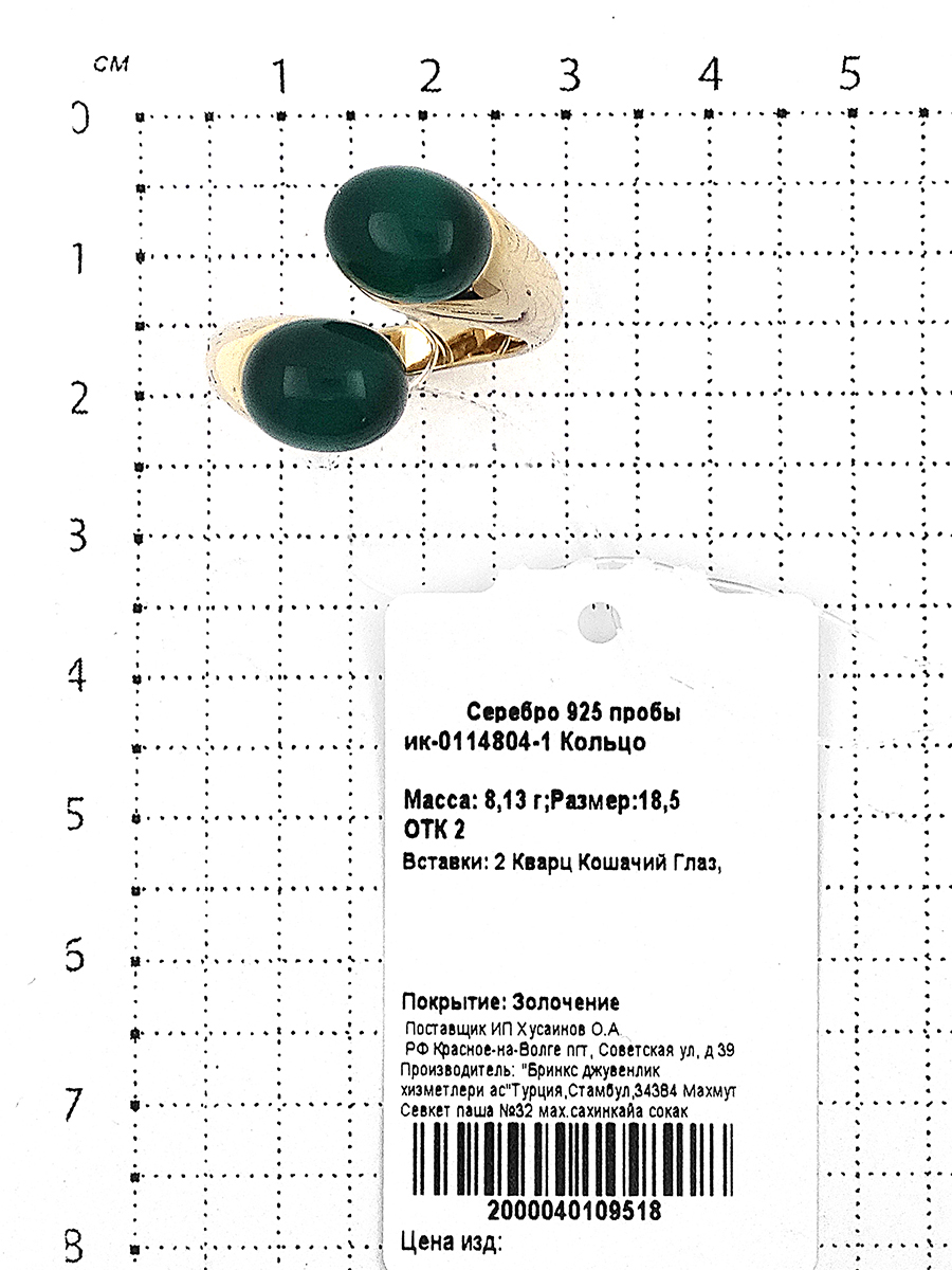 Кольцо из золочёного серебра с кварцем кошичий глаз ик-0114804-1