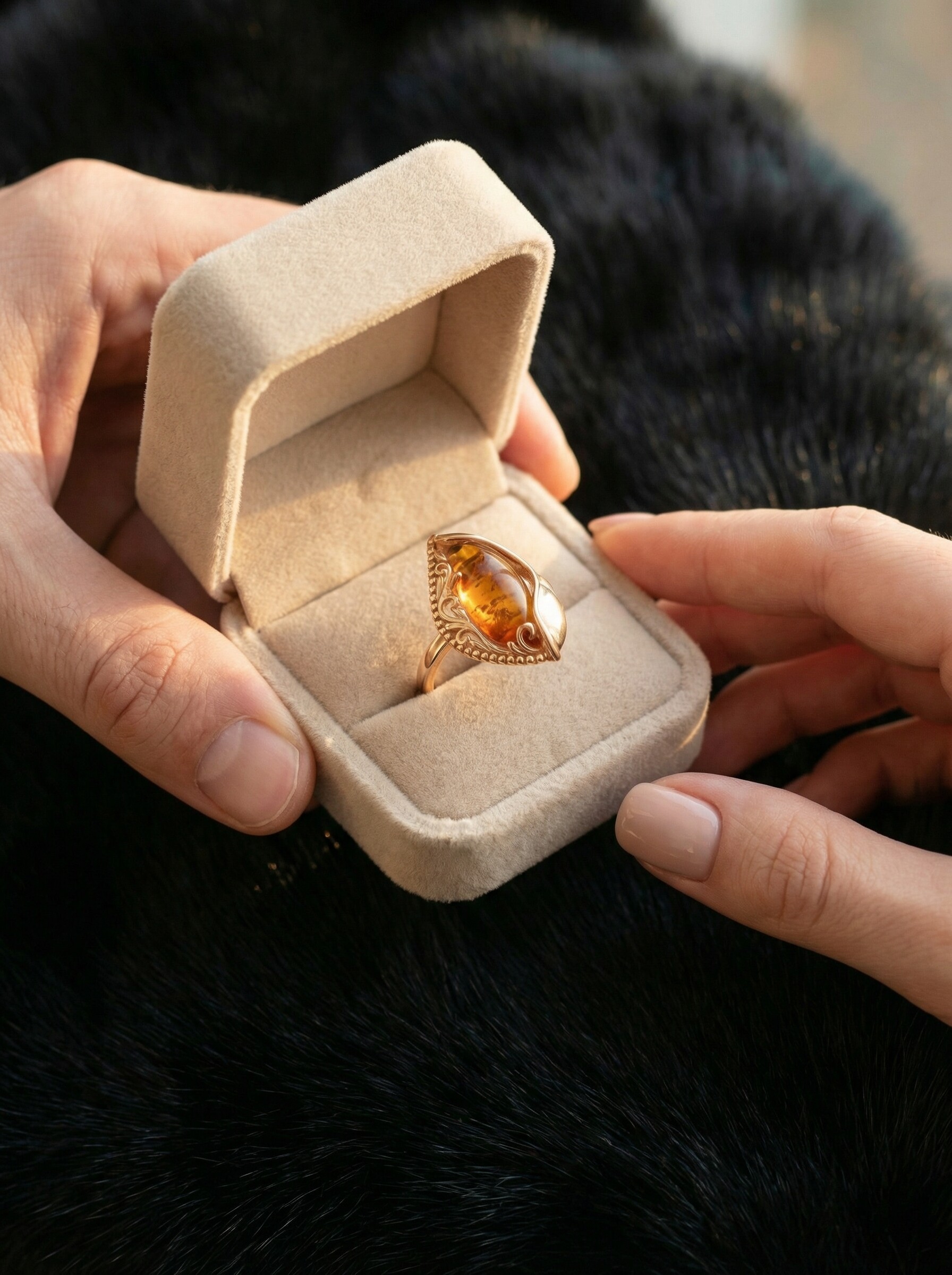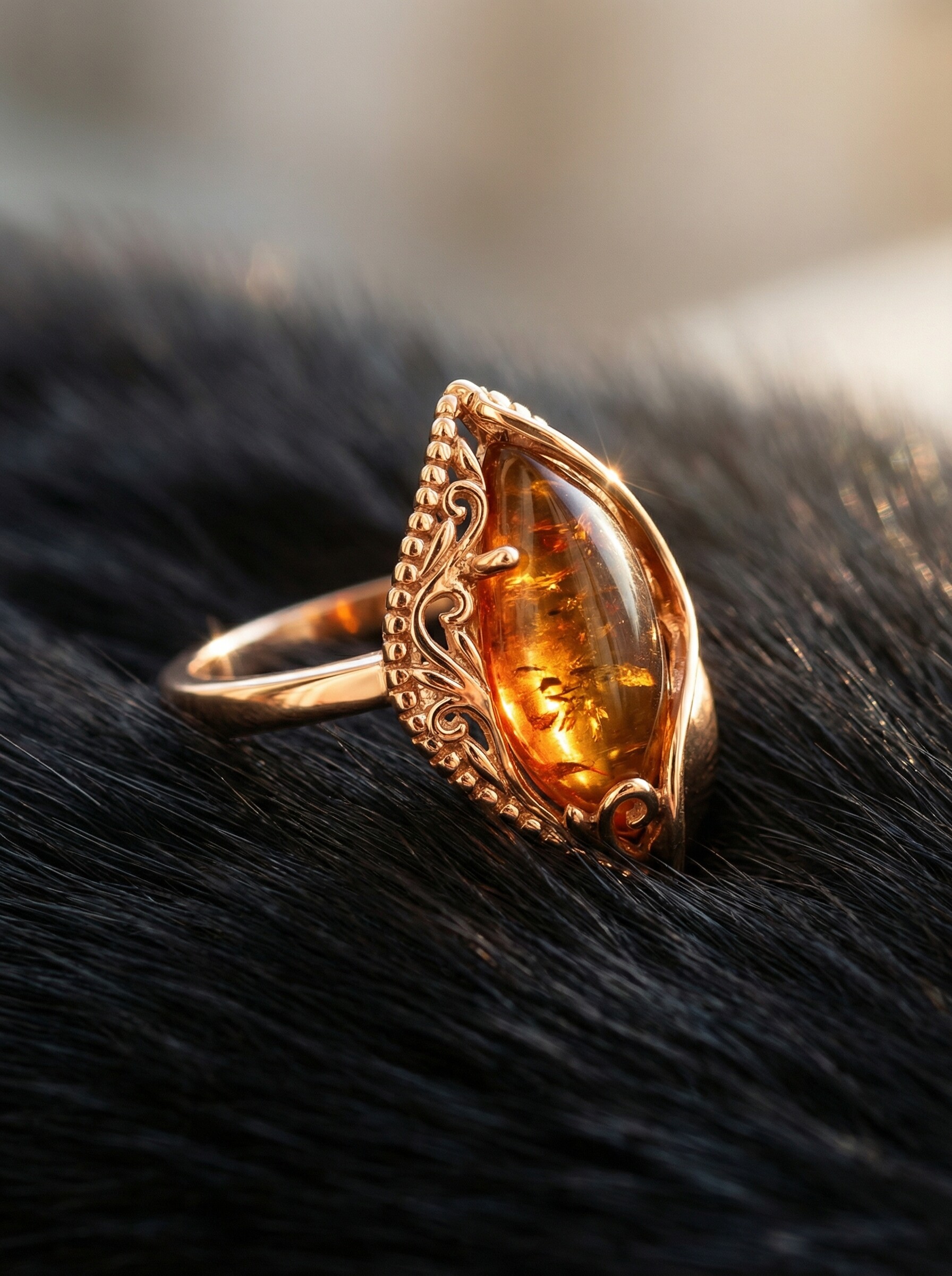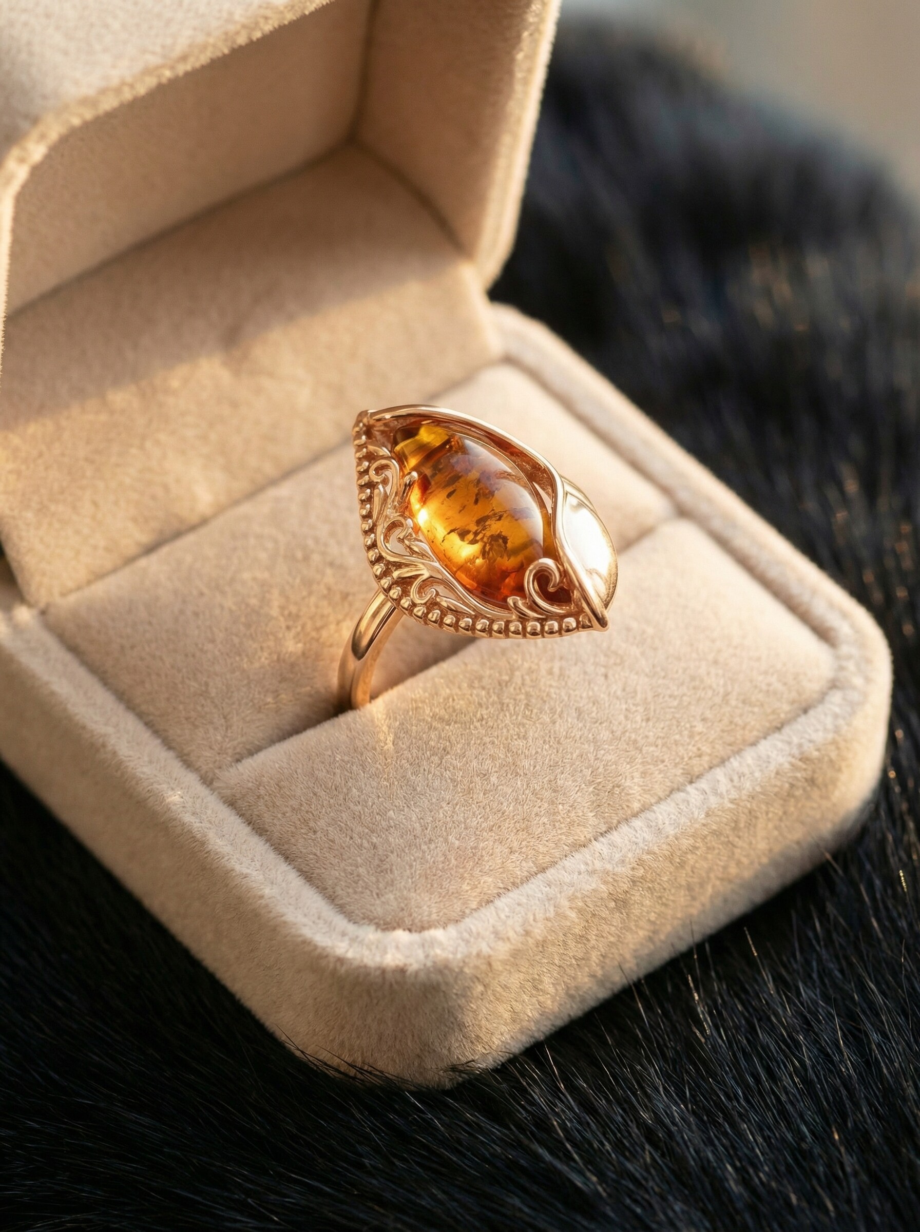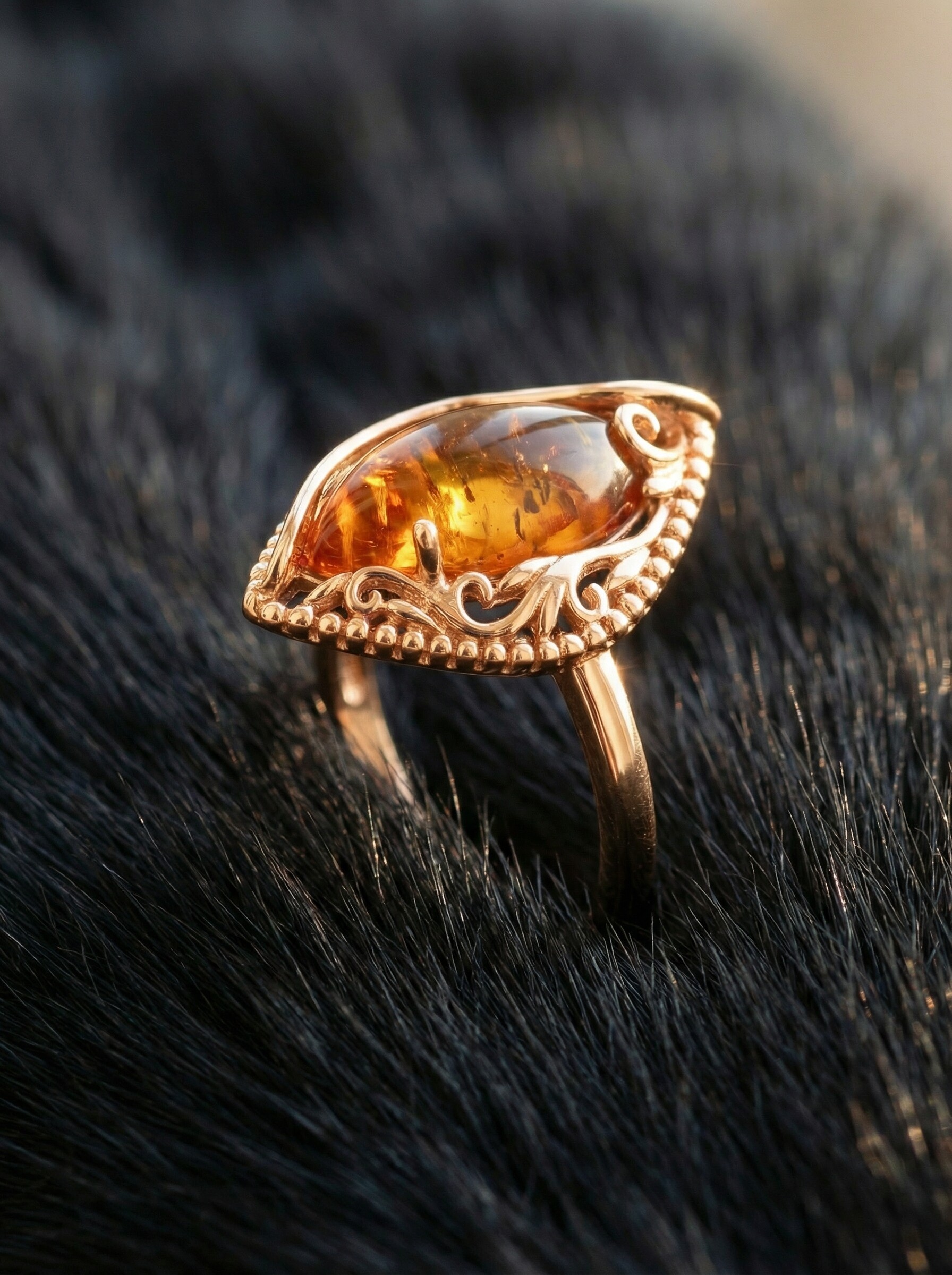 Кольцо из золочёного серебра с пресс. нат. янтарём