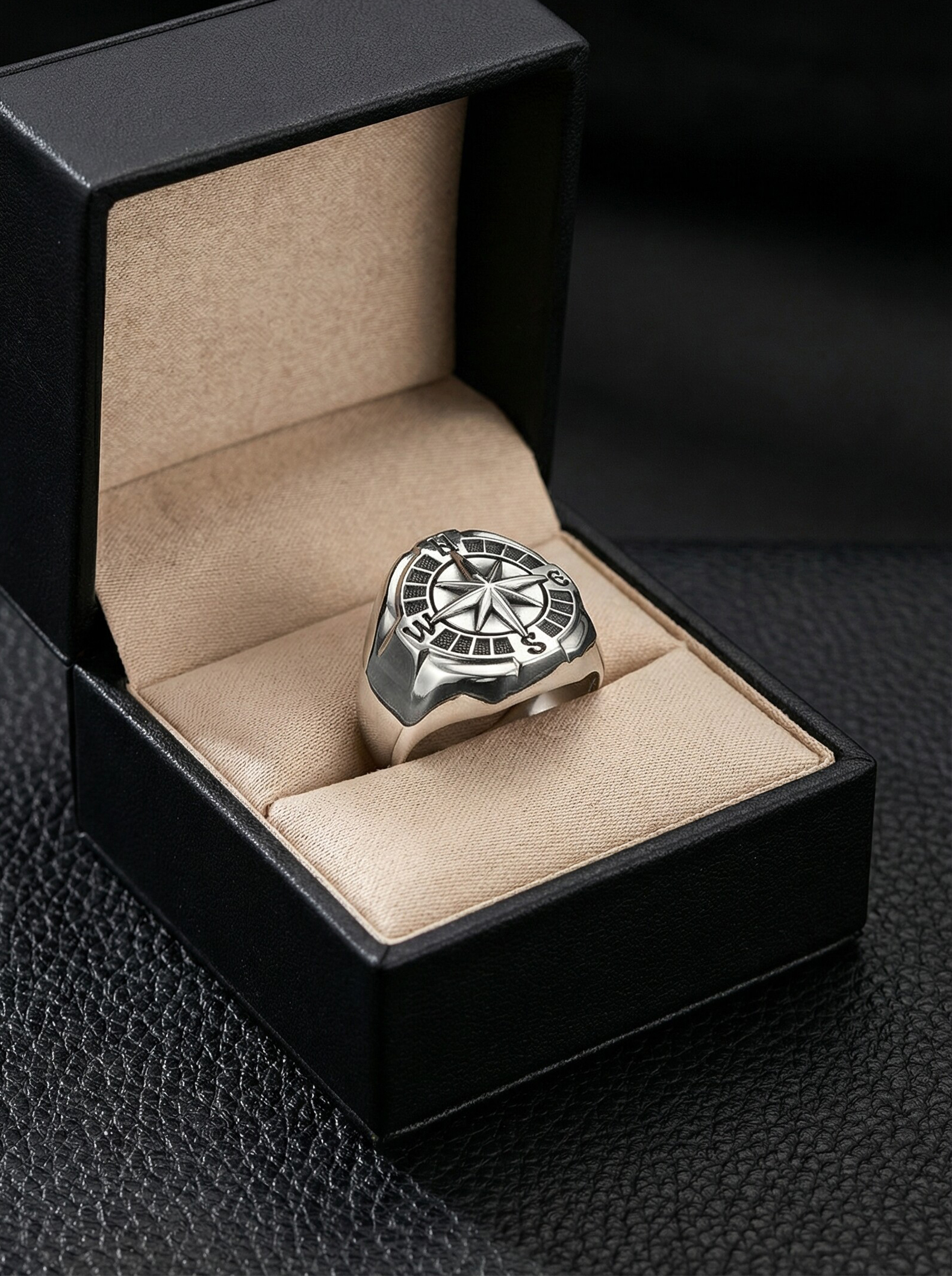Печатка из чернёного серебра - Роза ветров
