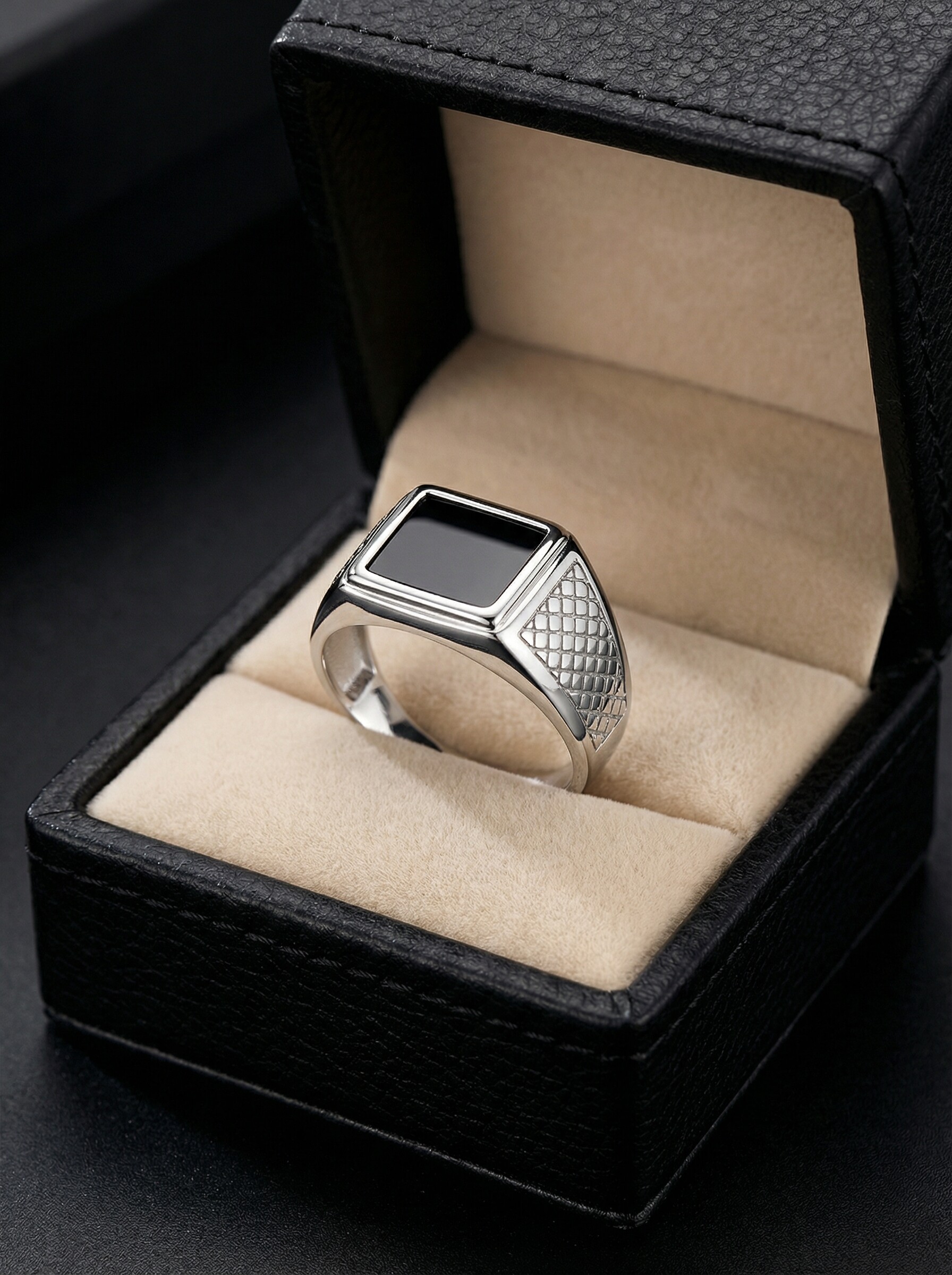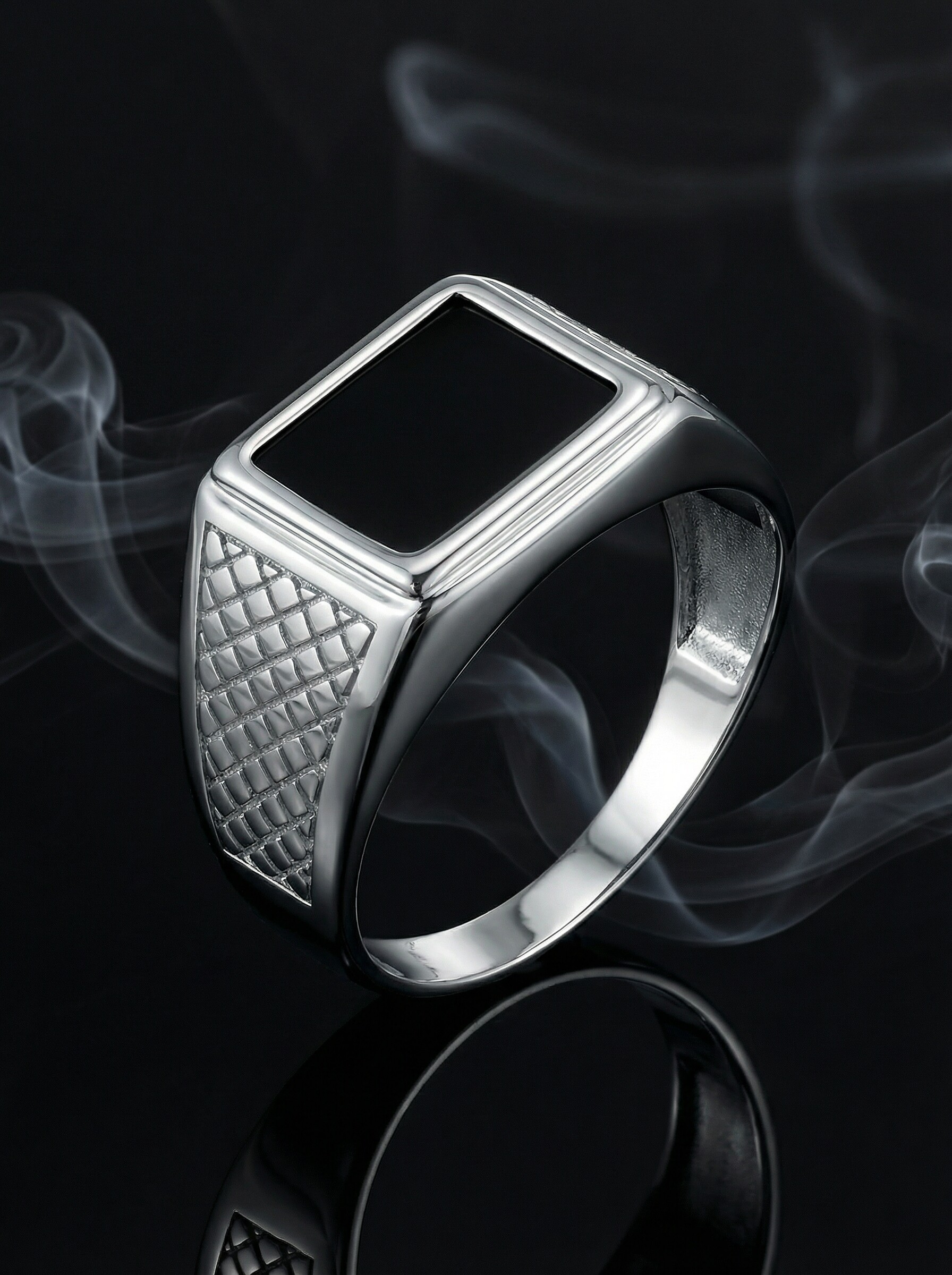 Печатка из серебра с чёрным ониксом родированная 925 пробы 310111р667