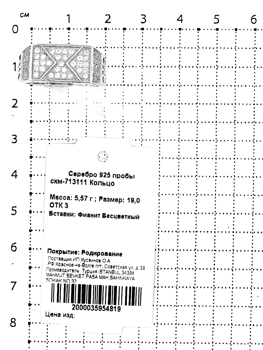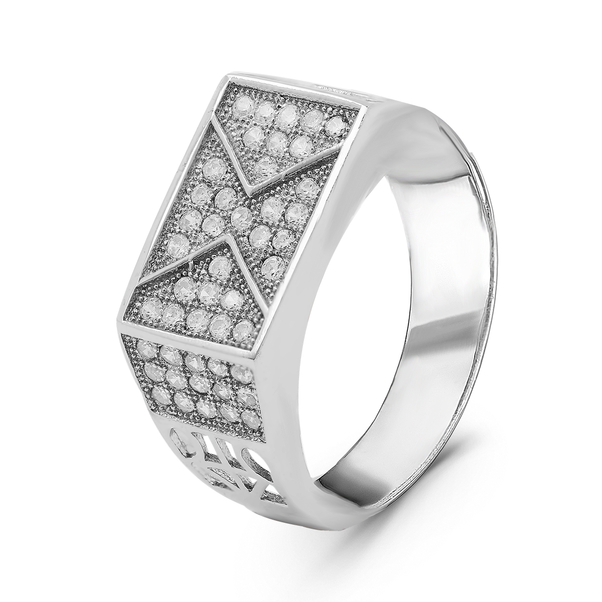 Печатка из серебра с фианитами родированная