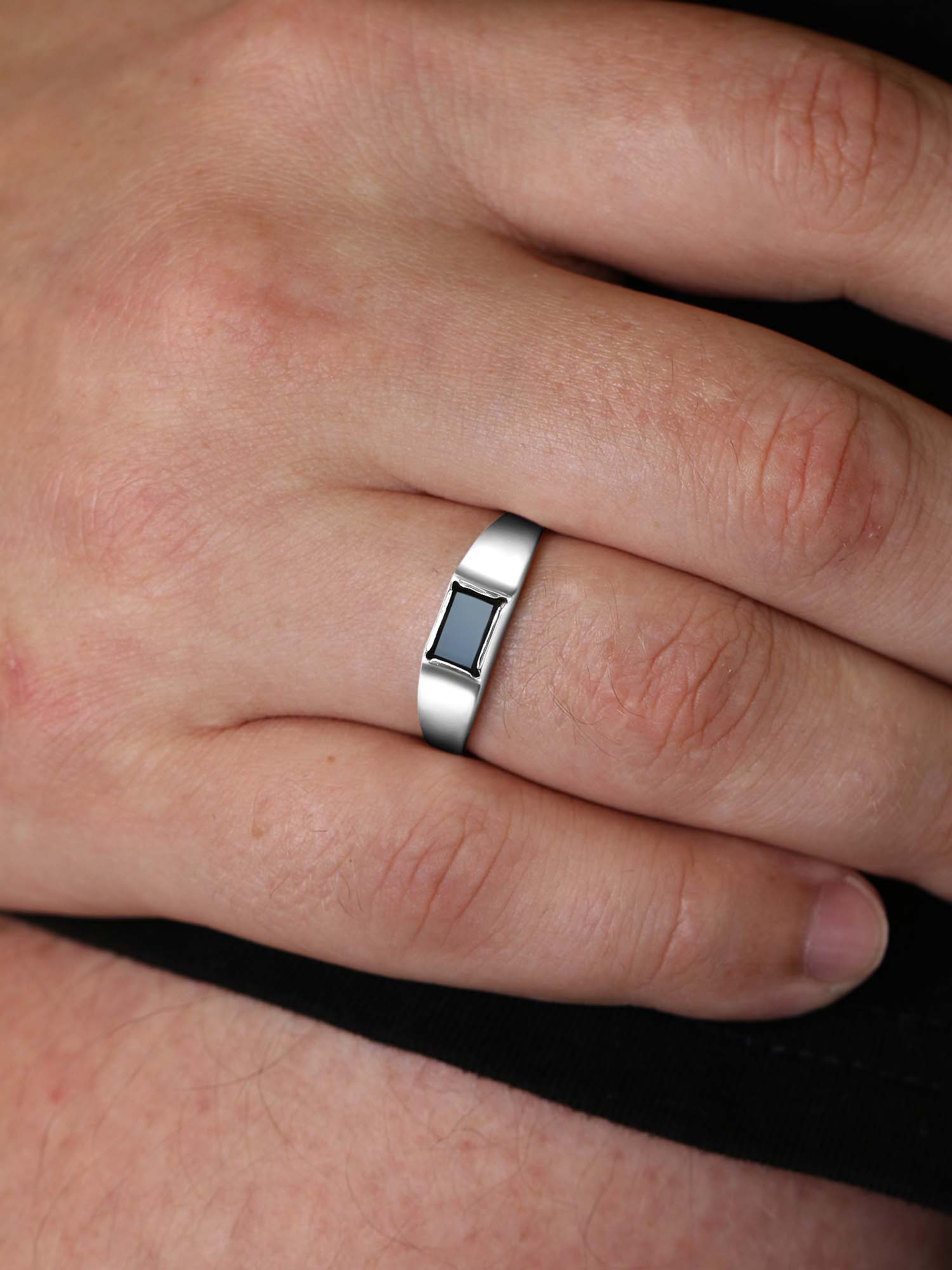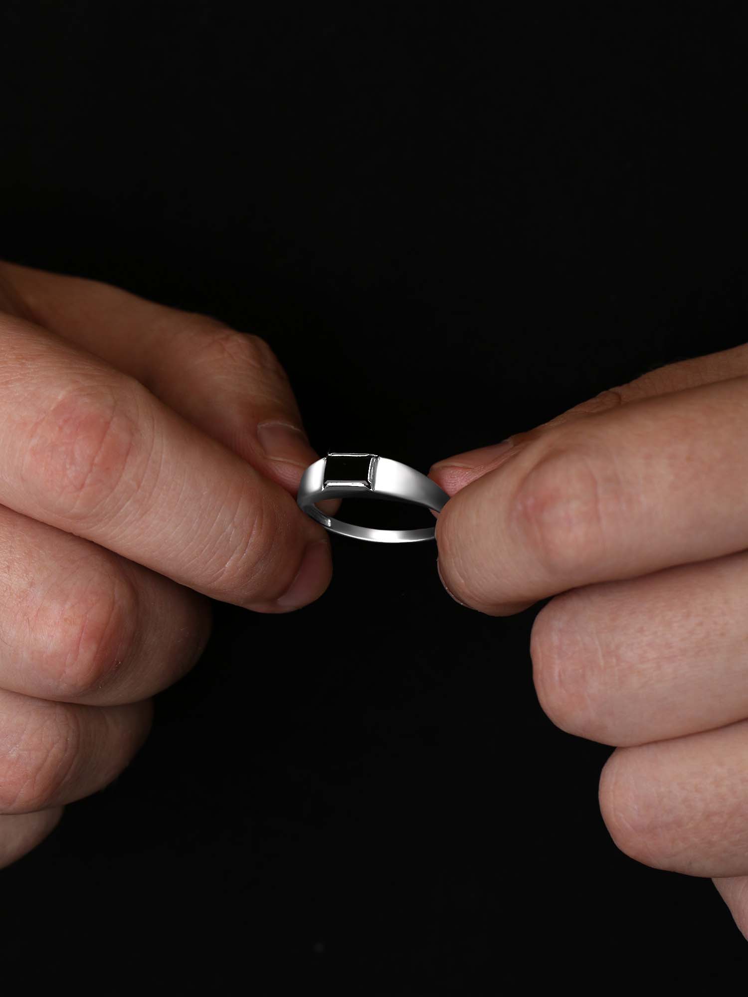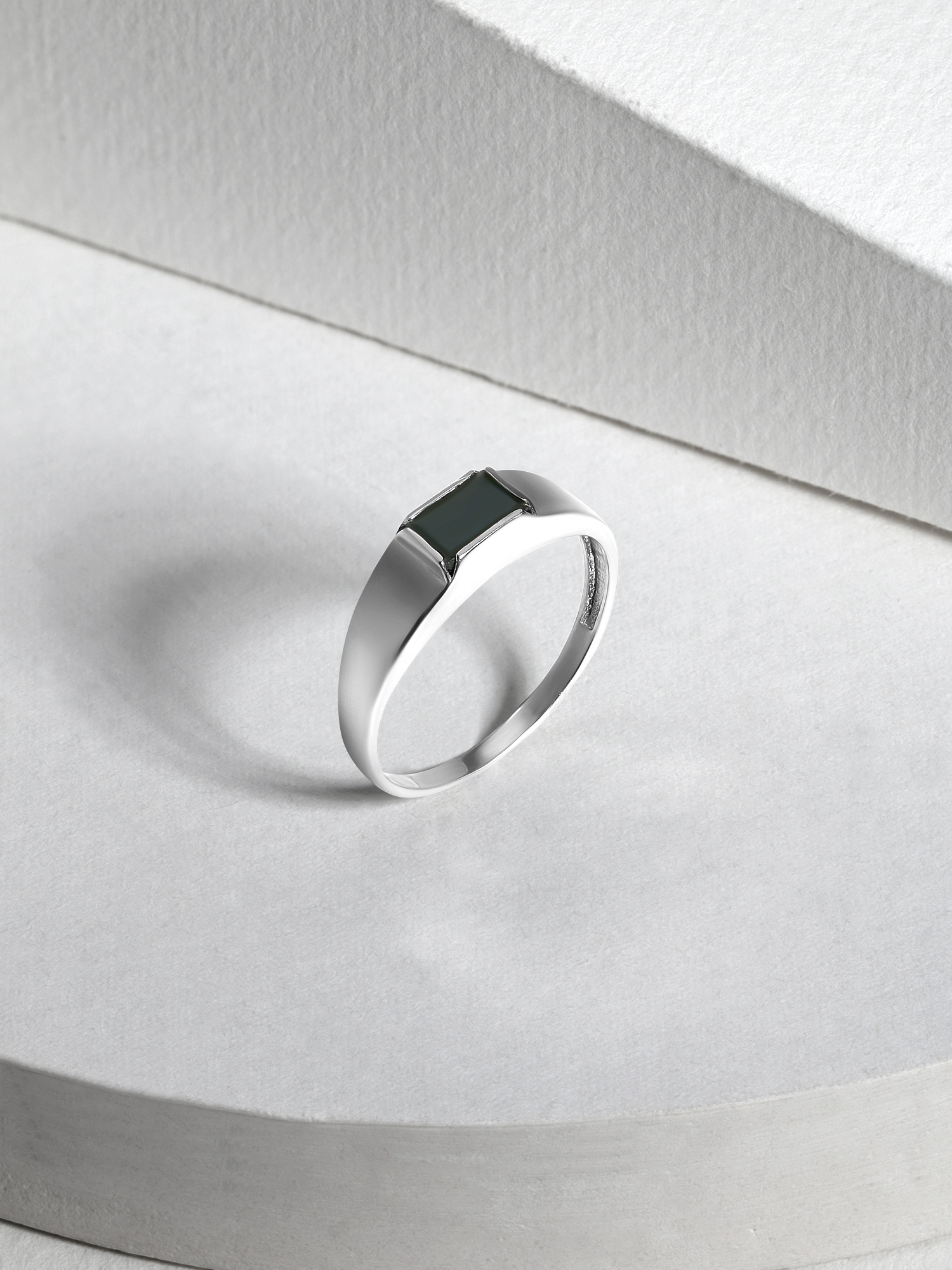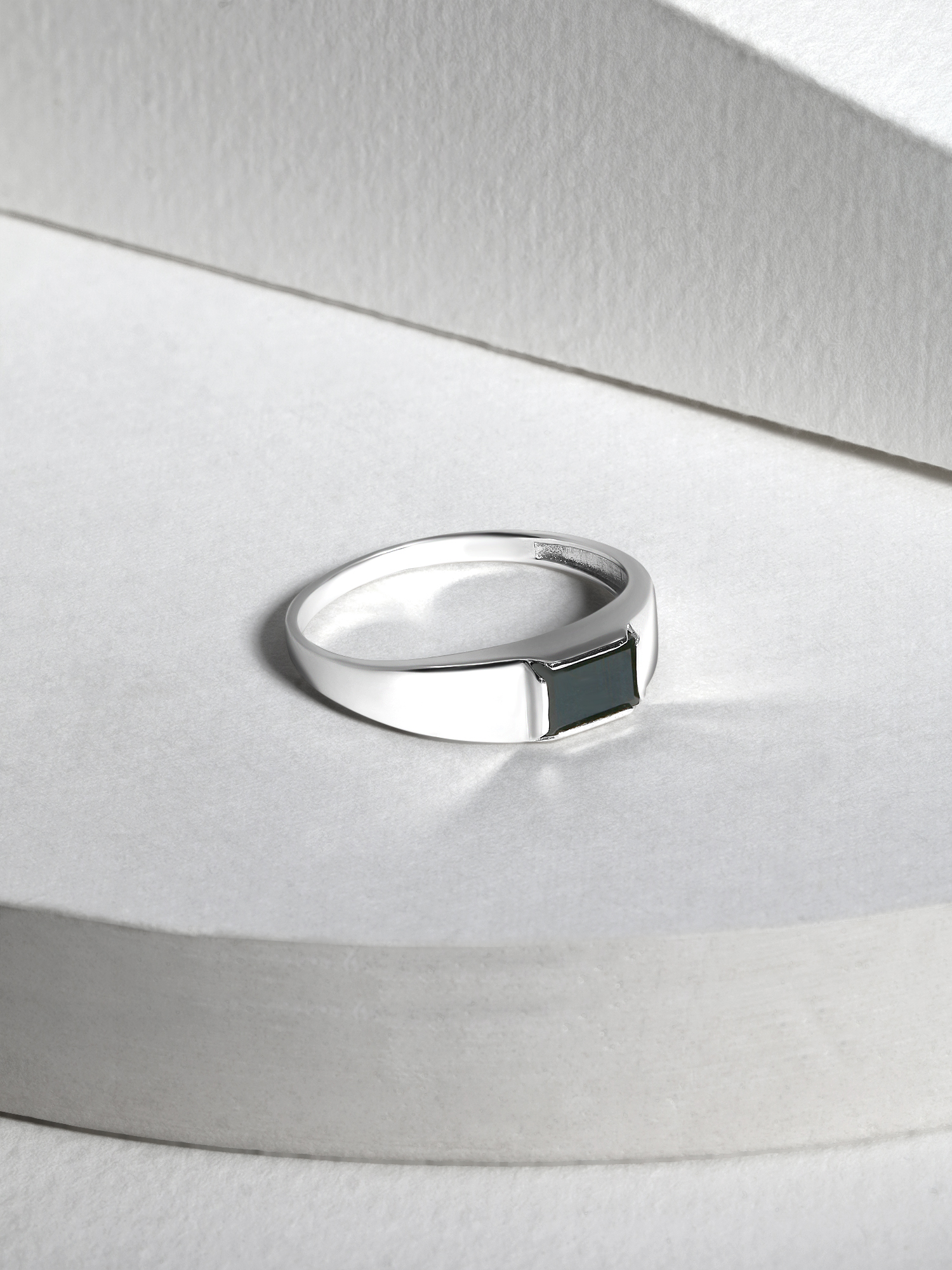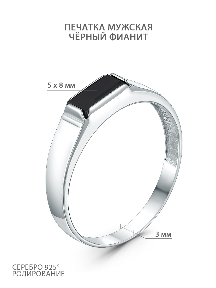 Печатка из серебра с фианитом родированная