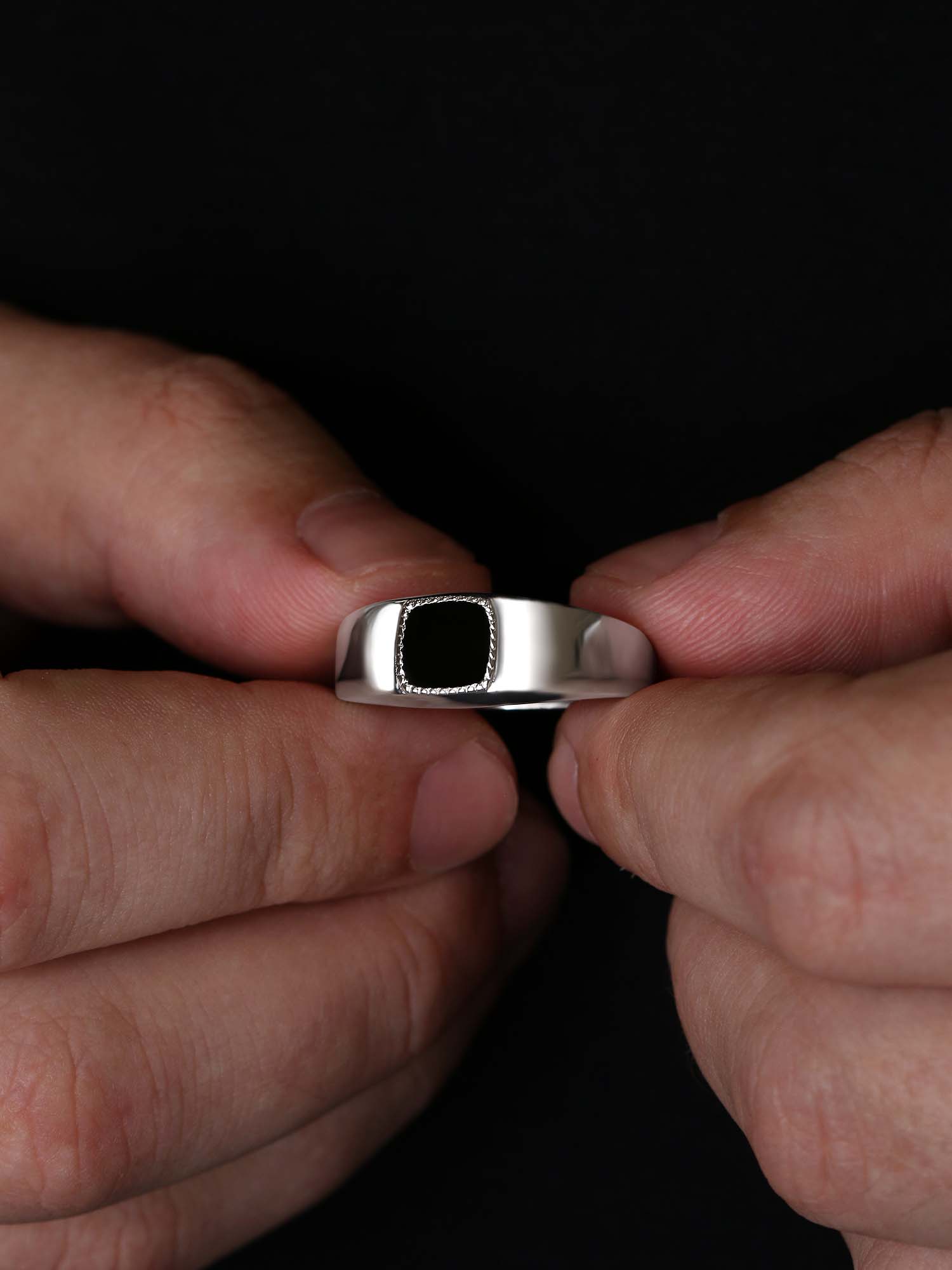 Печатка из серебра с нат.ониксом родированная 925 пробы 3102023р