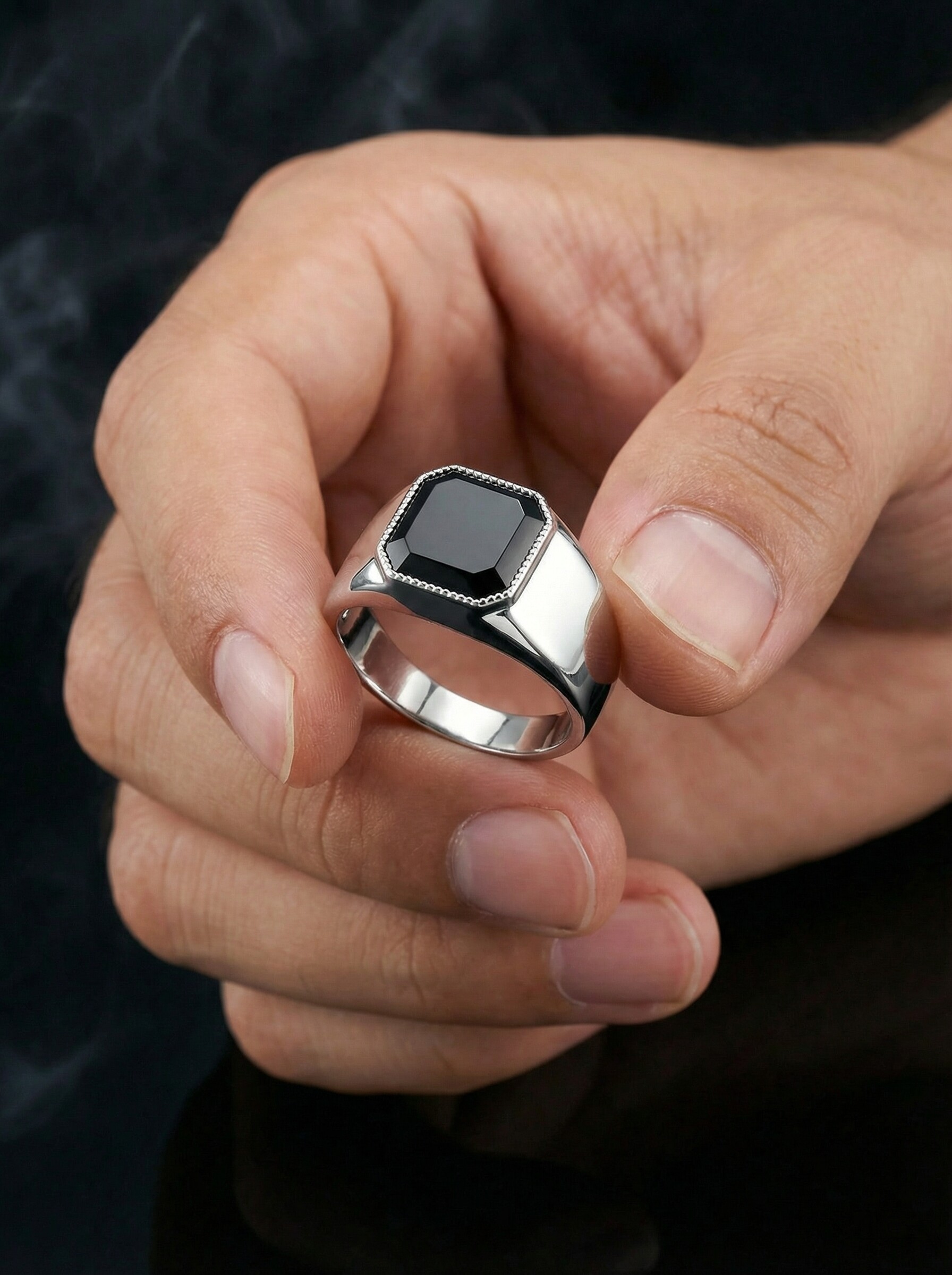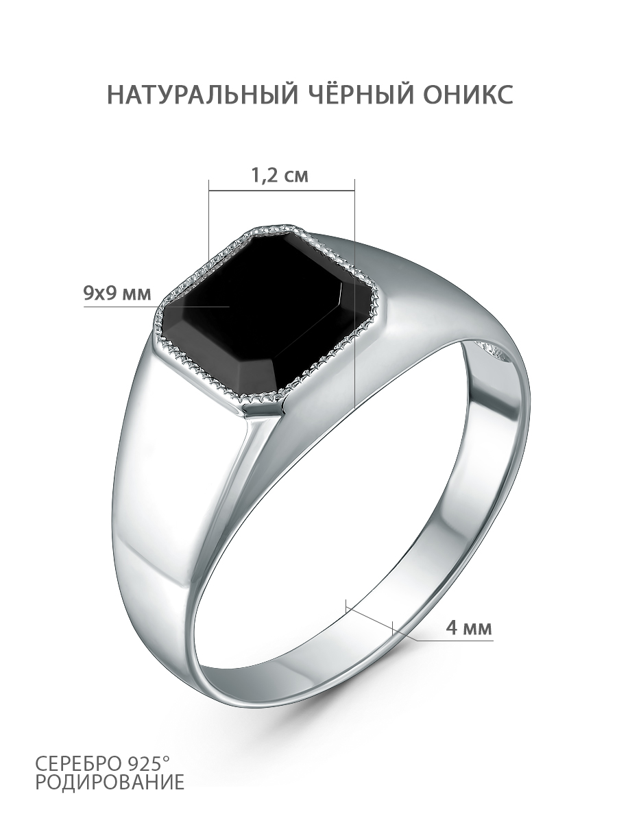 Печатка из серебра с нат.ониксом родированная