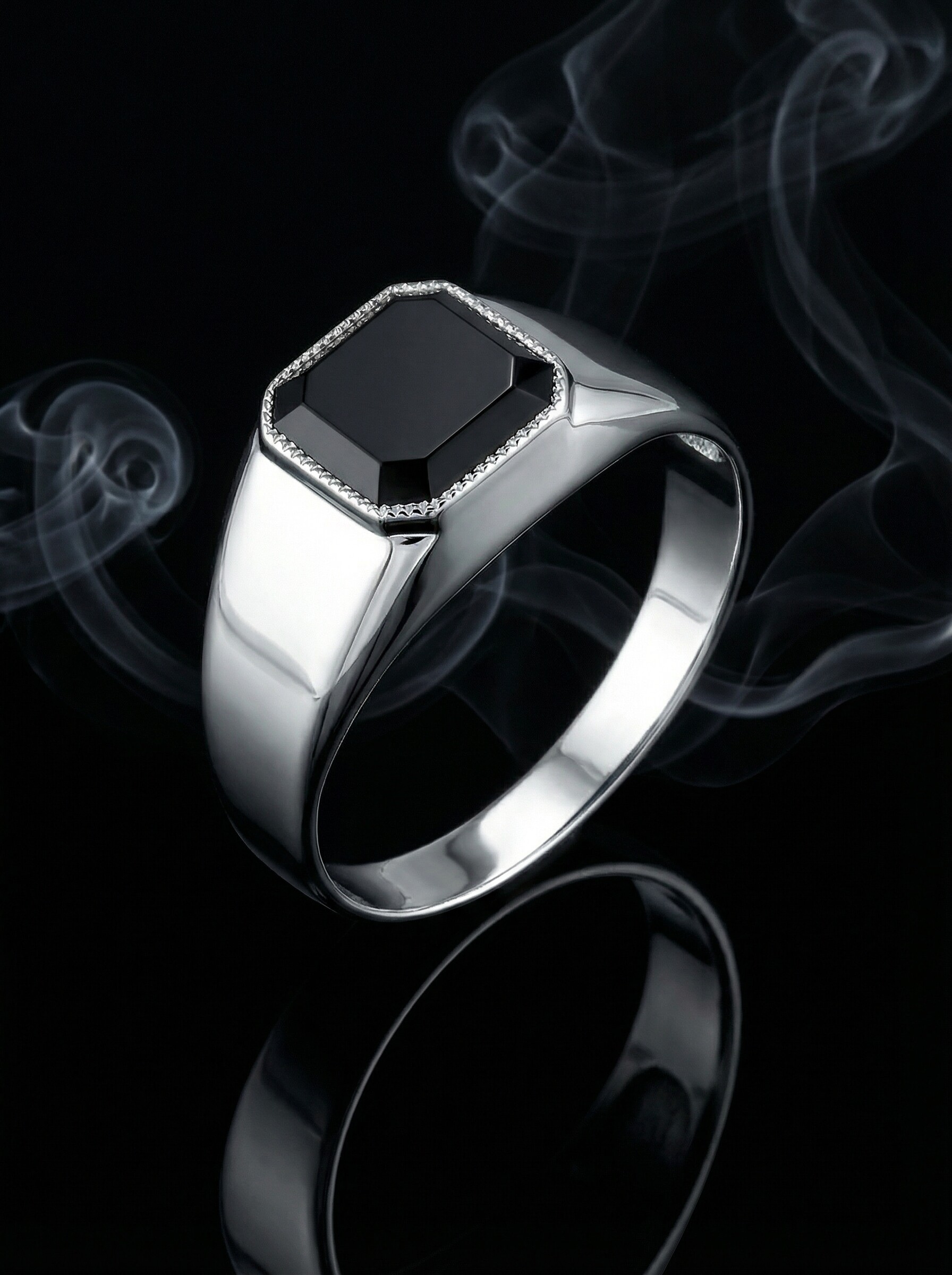 Печатка из серебра с нат.ониксом родированная 925 пробы 3102011р