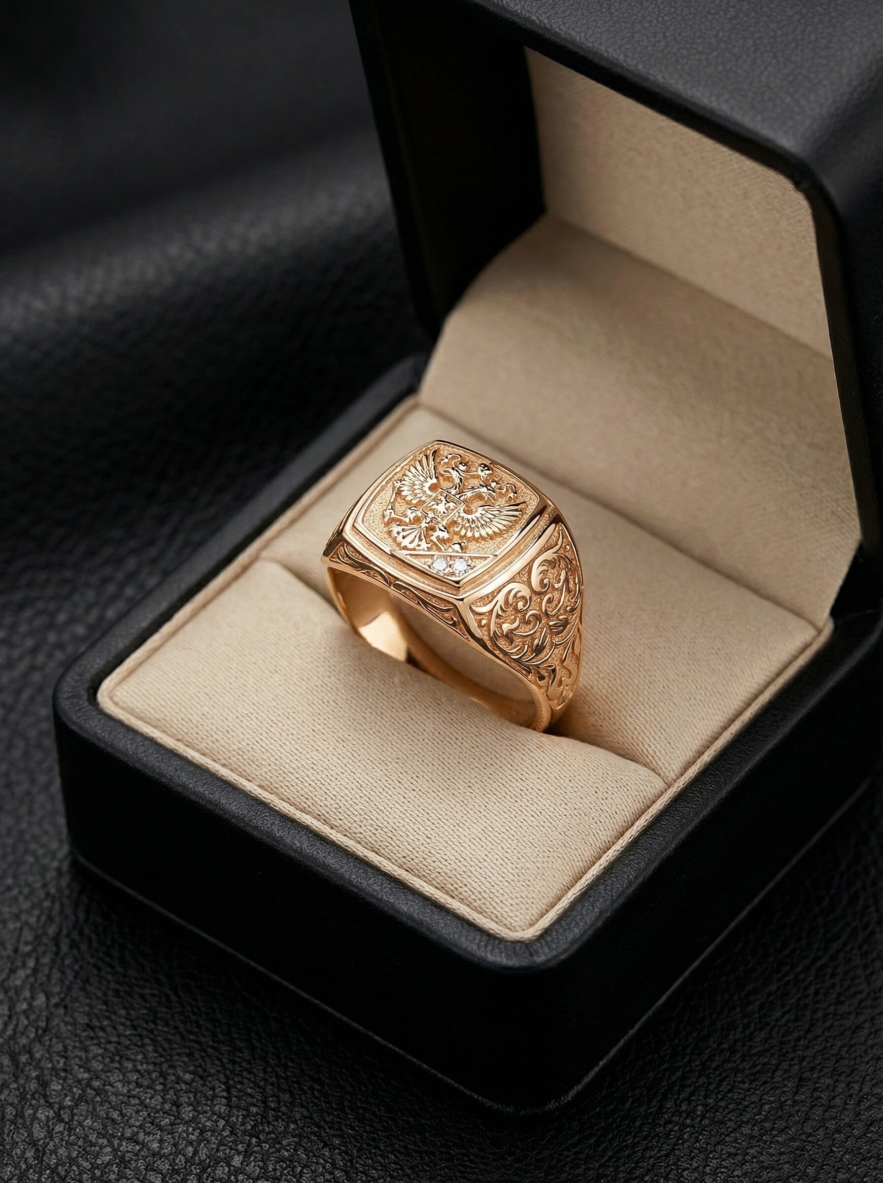 Печатка мужская из золочёного серебра с фианитами Герб