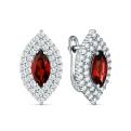 Серьги из серебра с гранатом и кубическим цирконием родированные