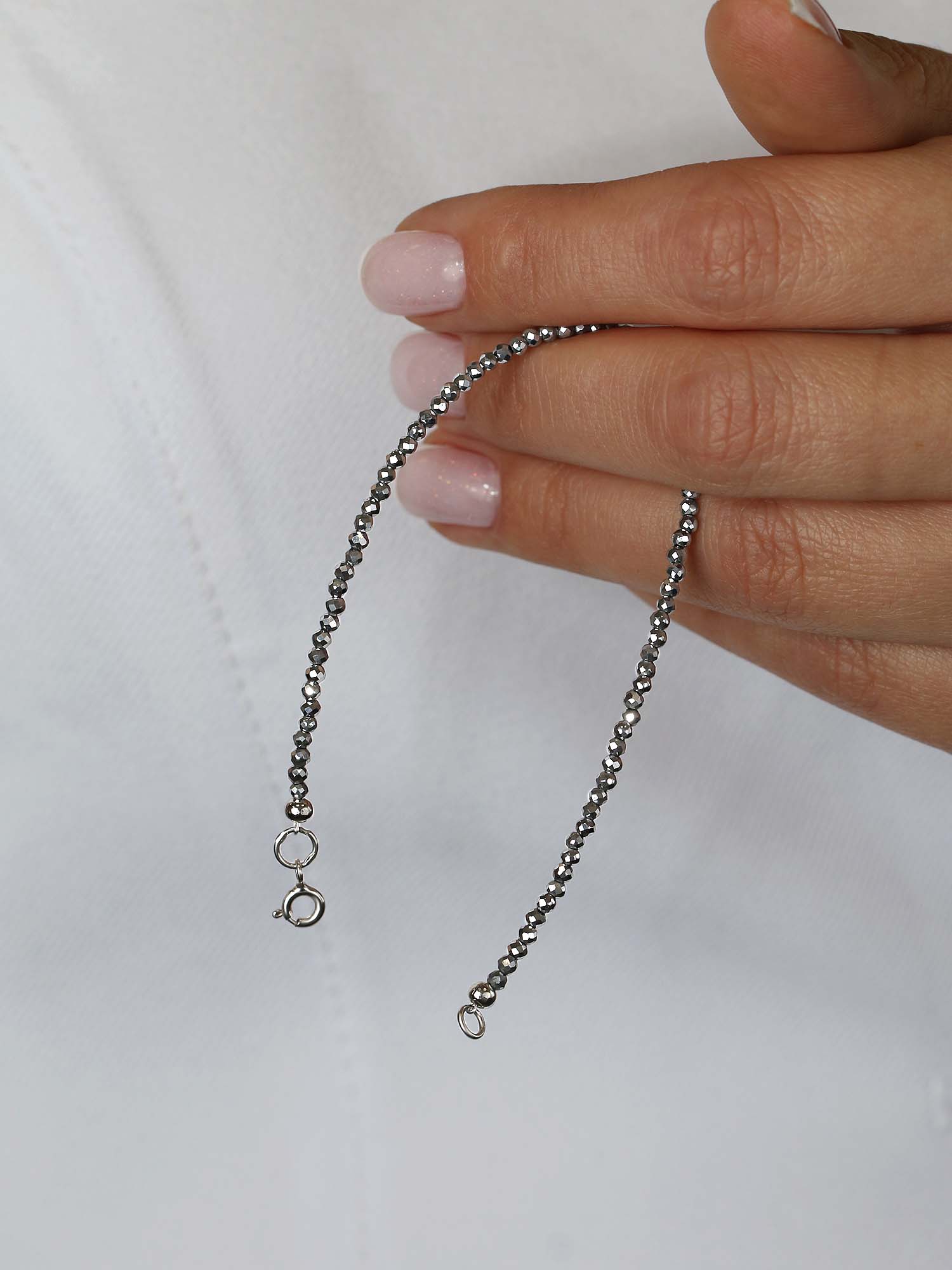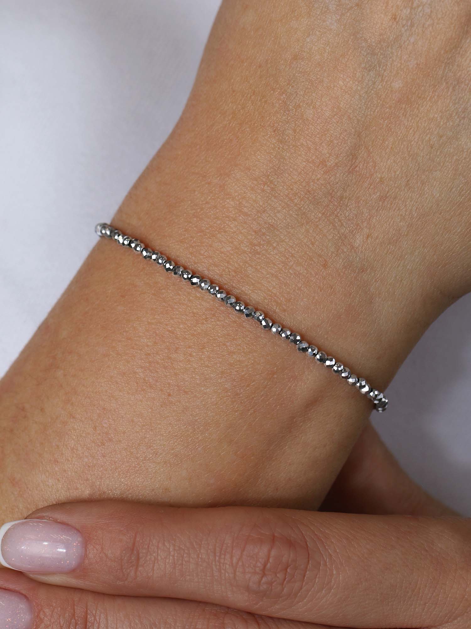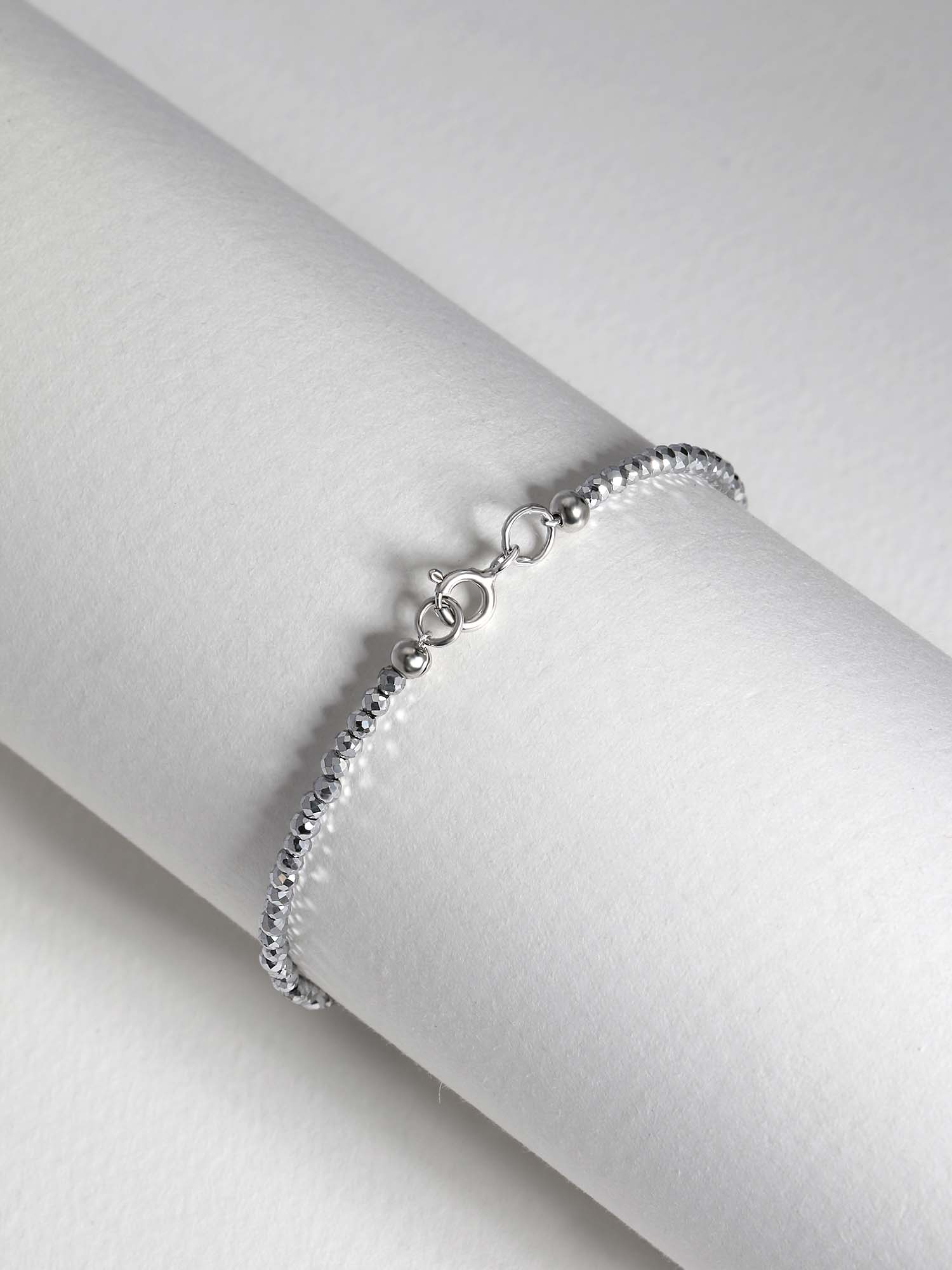 Браслет из серебра с серыми марказитами родированный
