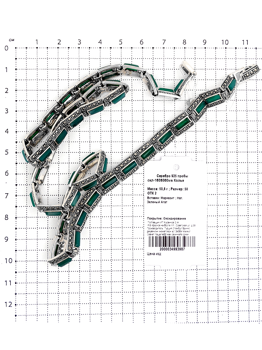 Колье из чернёного серебра с нат.зеленым агатом и марказитами скл-1606060ма