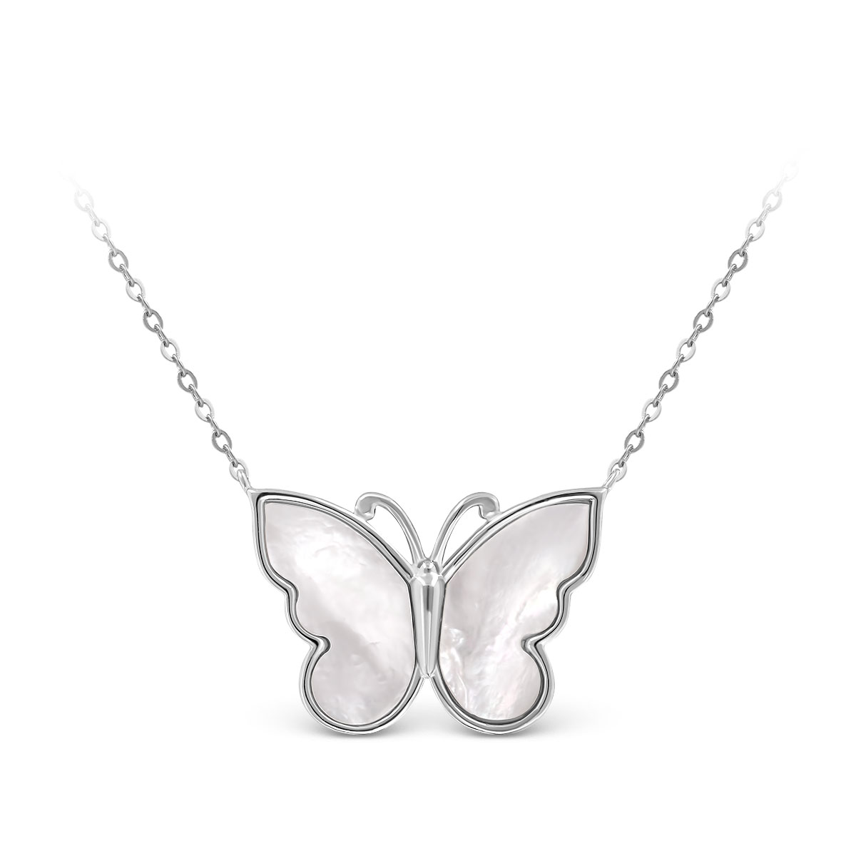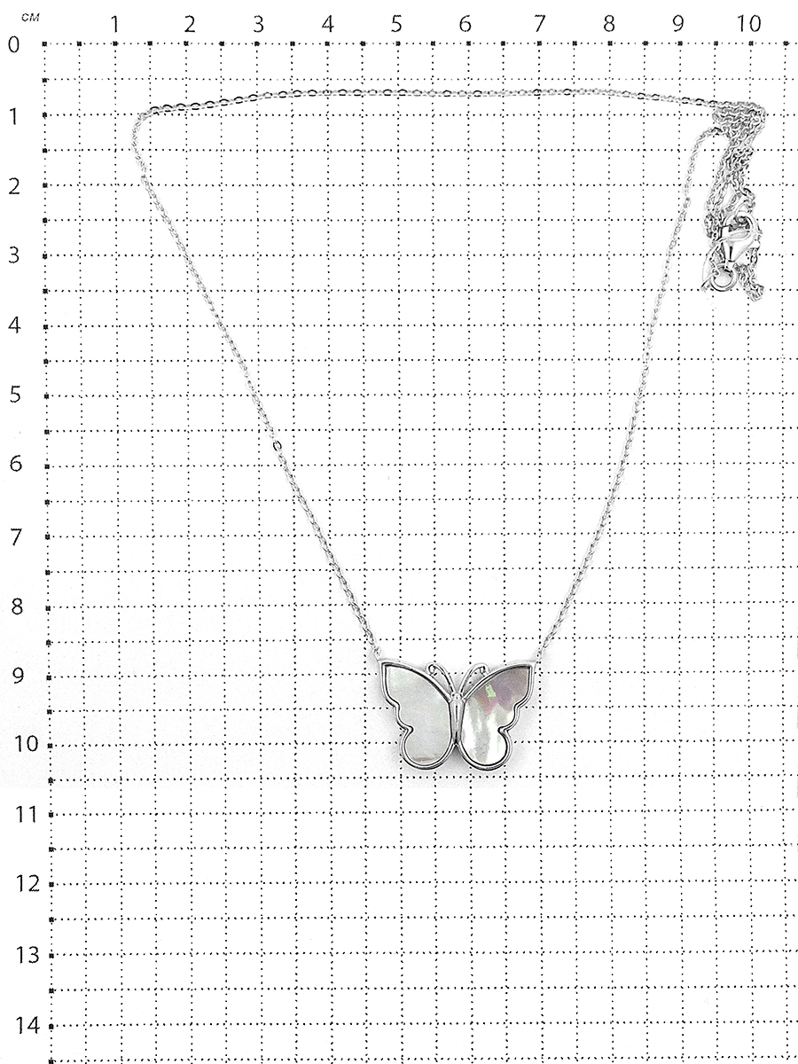 Колье из серебра с нат.перламутром родированное - Бабочка
