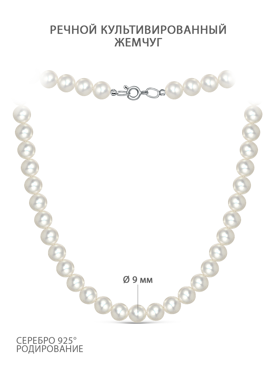 Колье из серебра с речным культивированным жемчугом родированное - 40 см