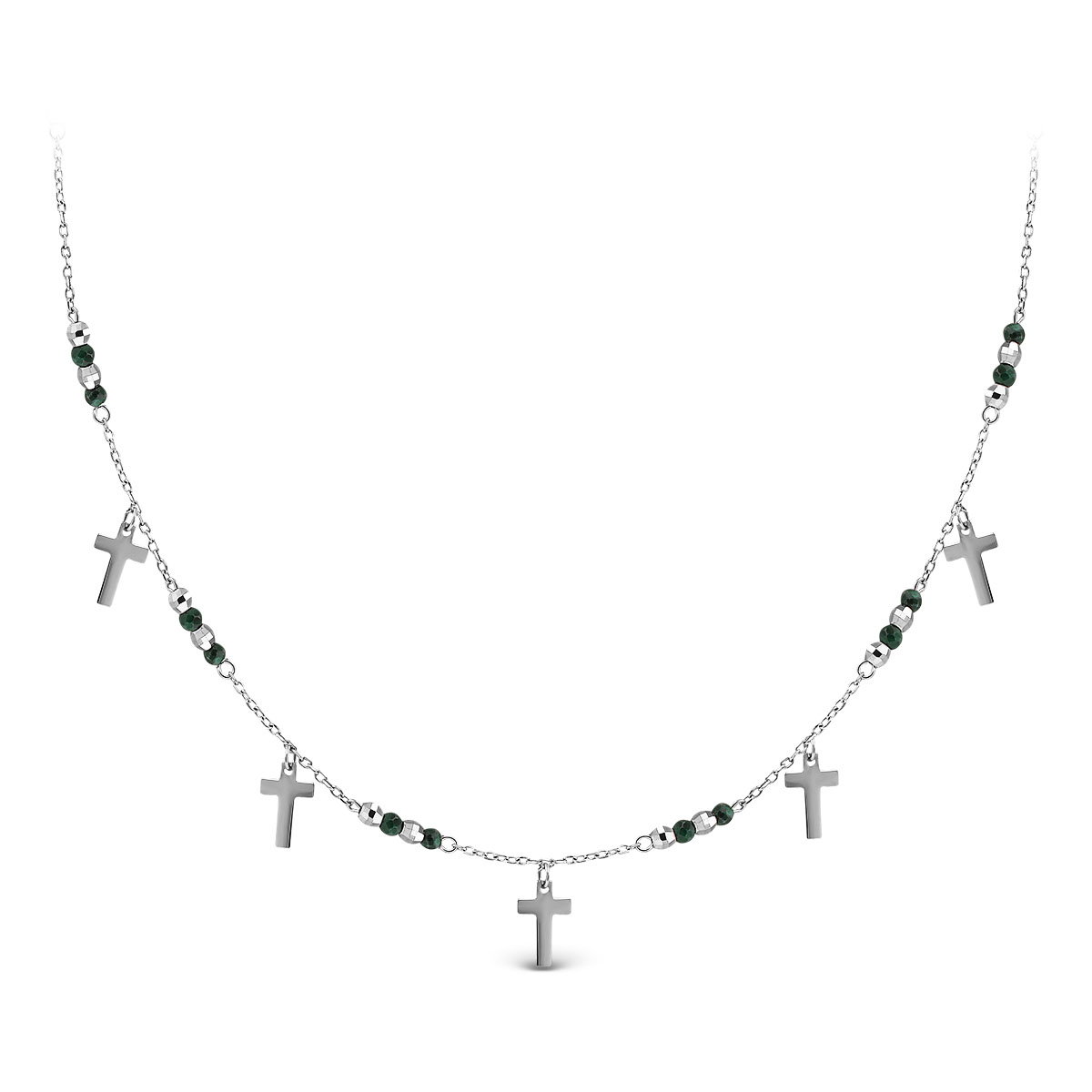 Колье из серебра с реконст.малахитом родированное JNB-003р643