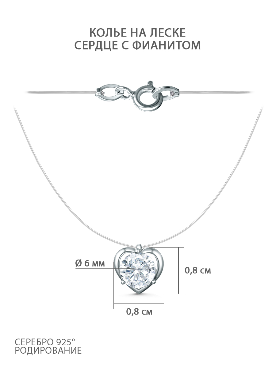 Колье сердце на леске из серебра с фианитом родированное 6102003