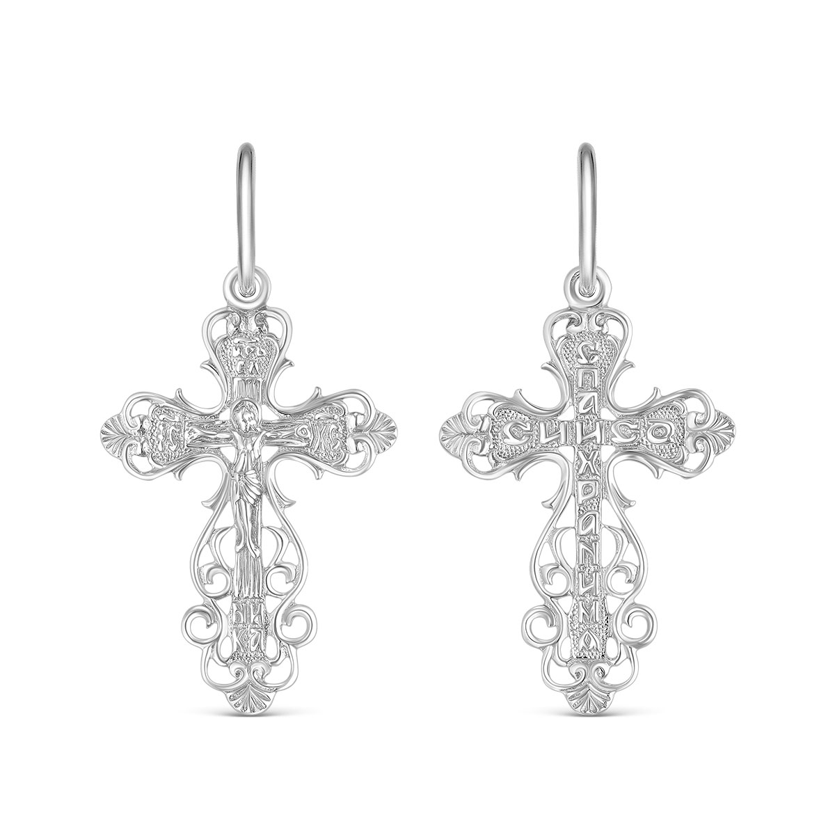 Крест из серебра родированный