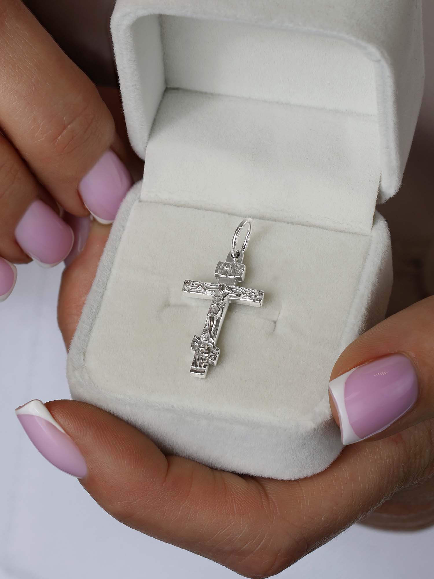 Крест из серебра родированный - 3,4 см 925 пробы 2-147р