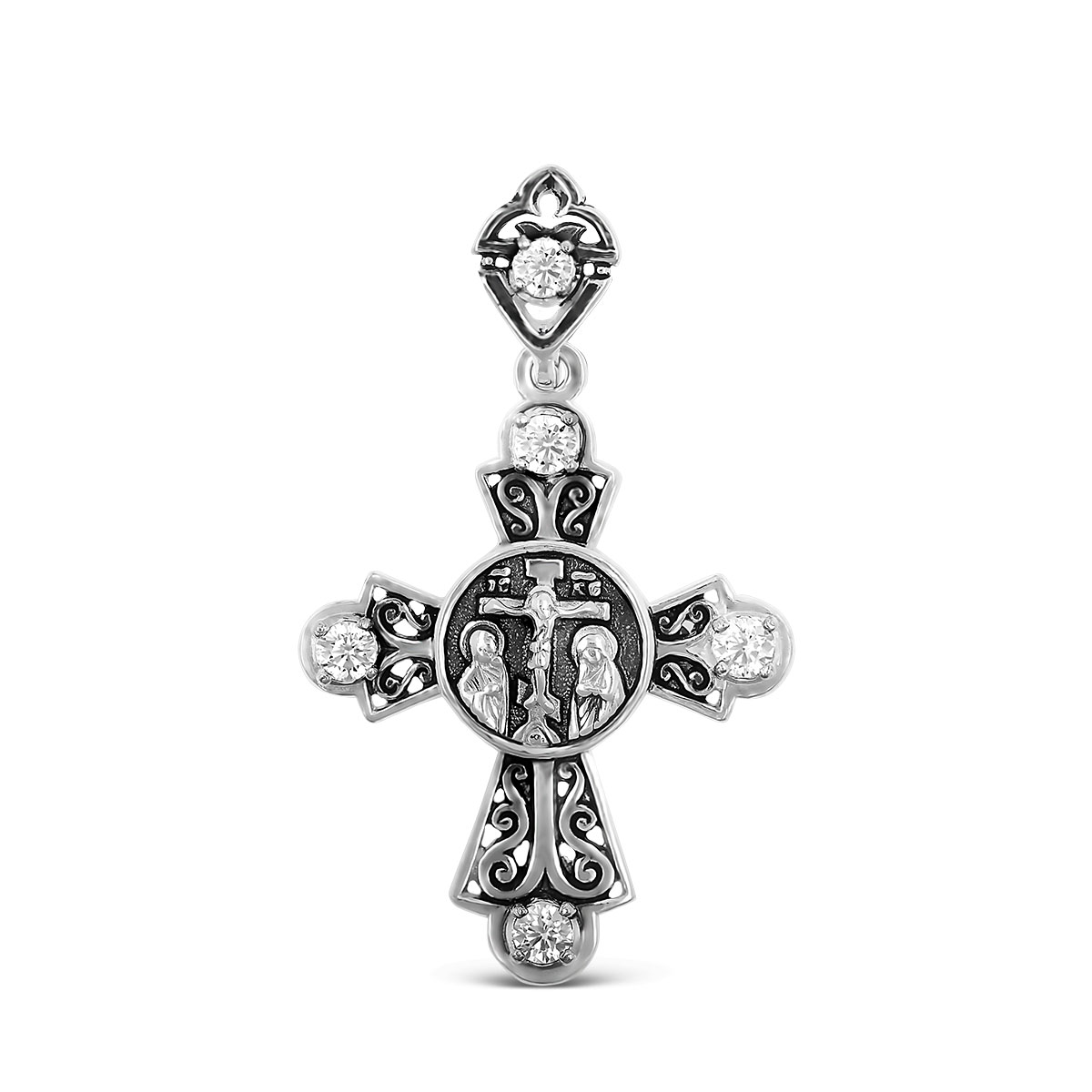 Крест из серебра с чернением и фианитами- 3,5 см