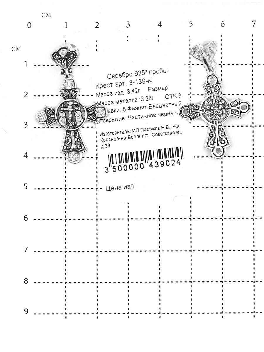 Крест из серебра с чернением и фианитами- 3,5 см 3-139чч