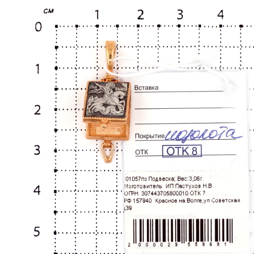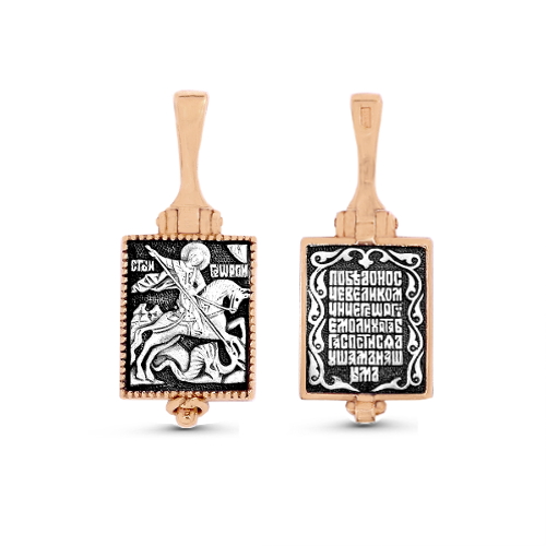 Нательная подвеска-складень св.Георгий Победоносец из серебра (чернение с позолотой)