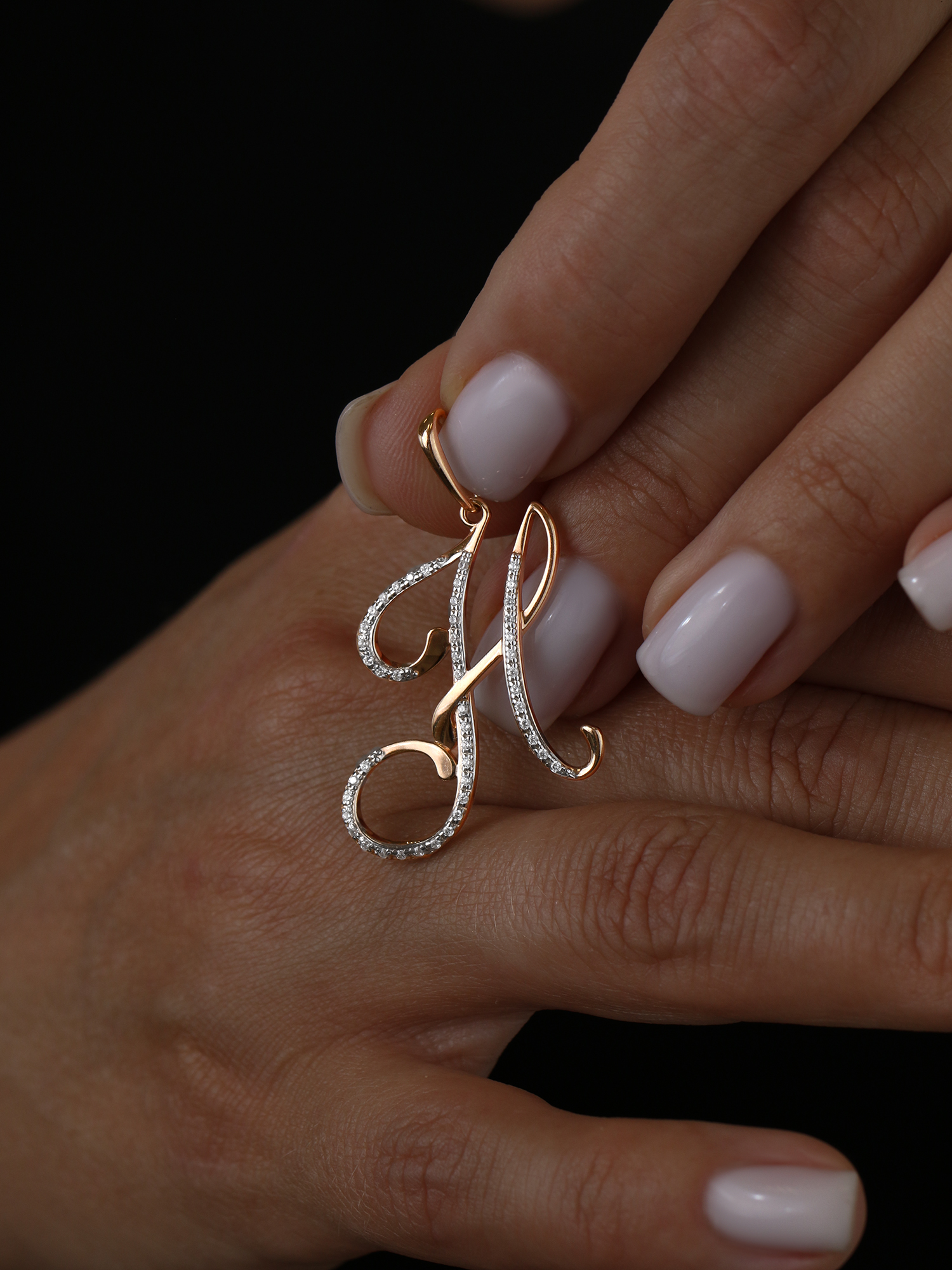 Подвеска из золочёного серебра с фианитами и родированием - буква