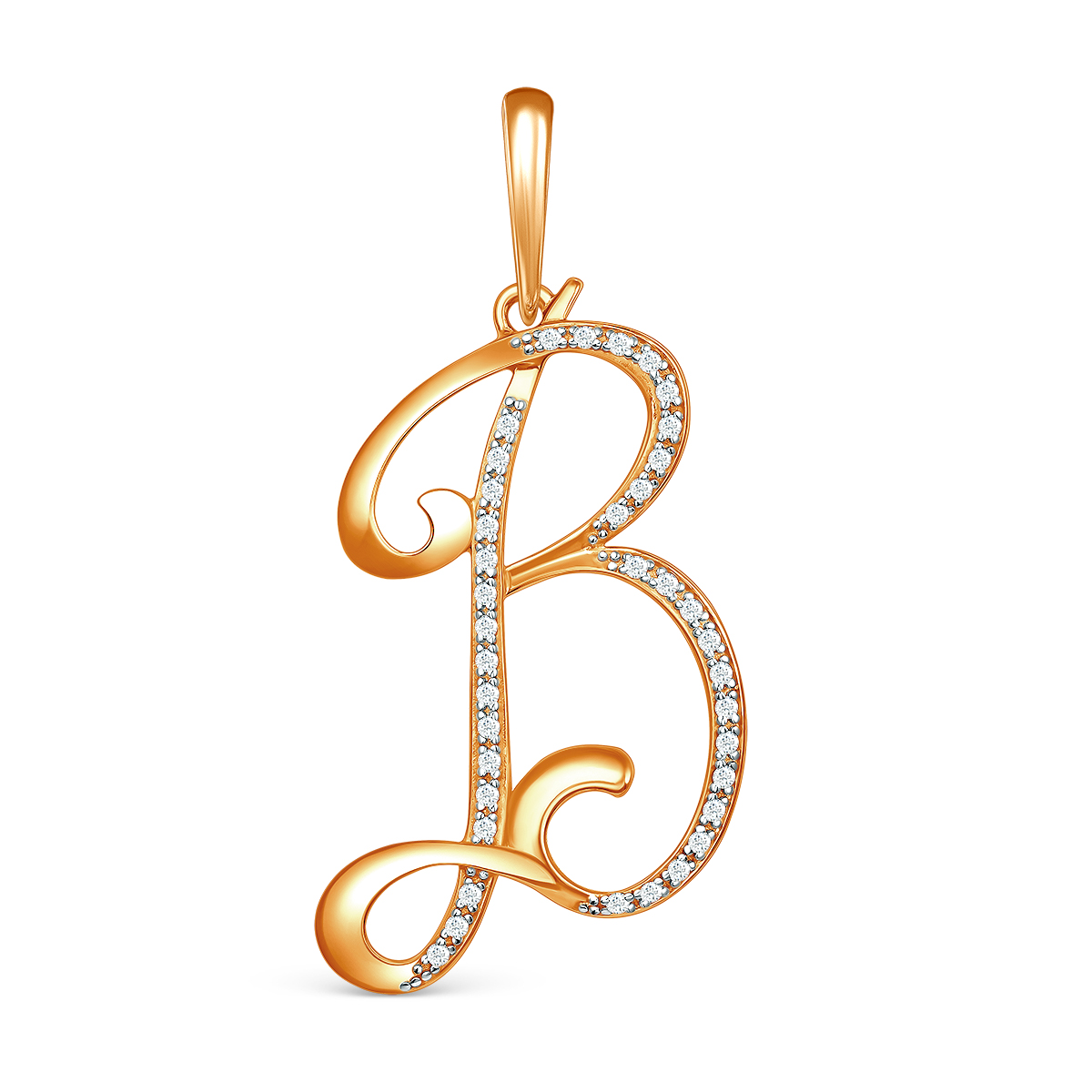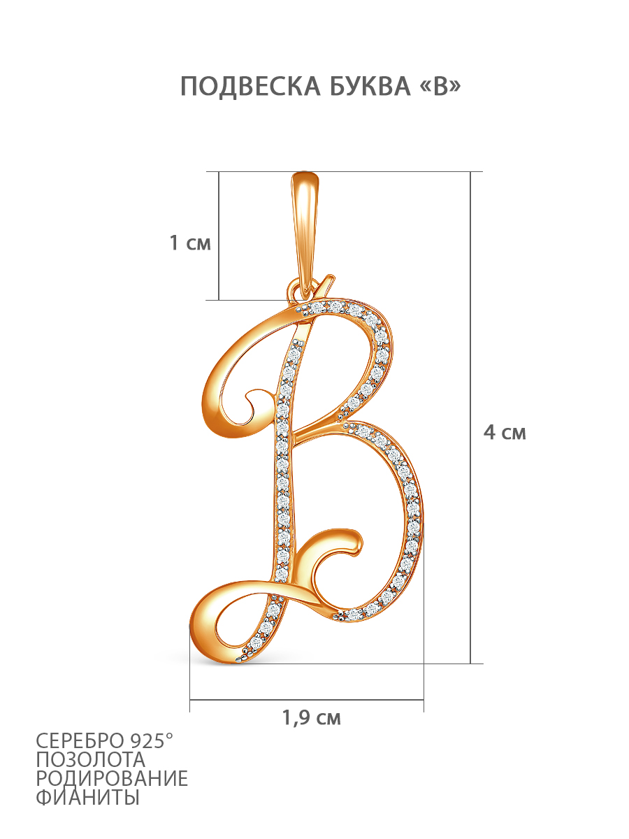 Подвеска-буква из золочёного серебра с фианитами - В п3-176-2з200