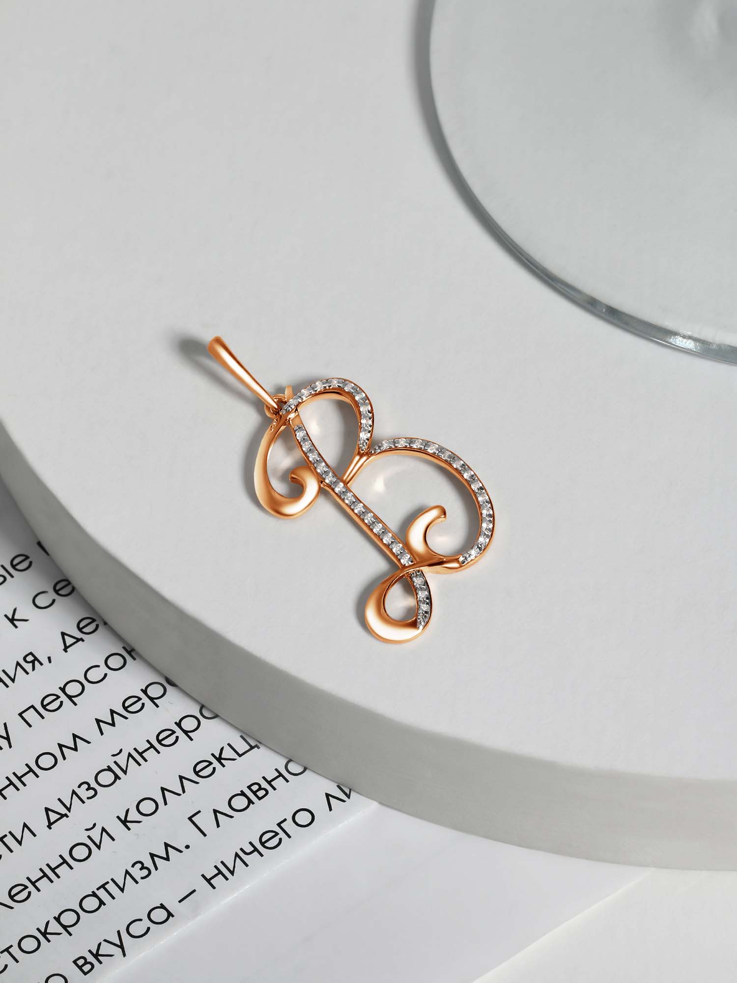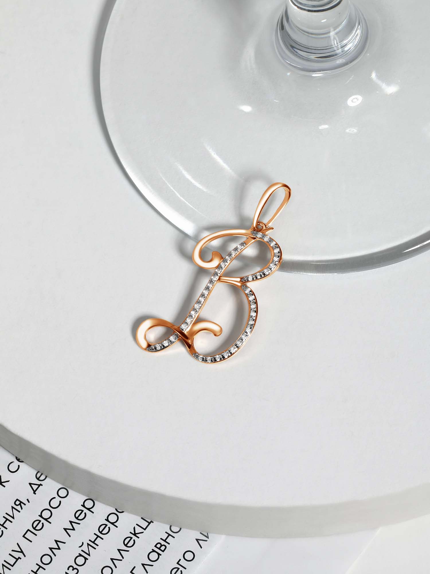 Подвеска из золочёного серебра с фианитами и родированием - Буква