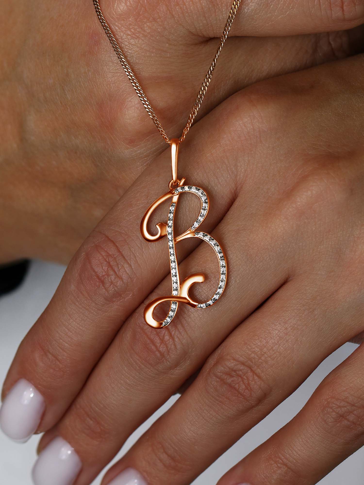Подвеска из золочёного серебра с фианитами и родированием - Буква "В"