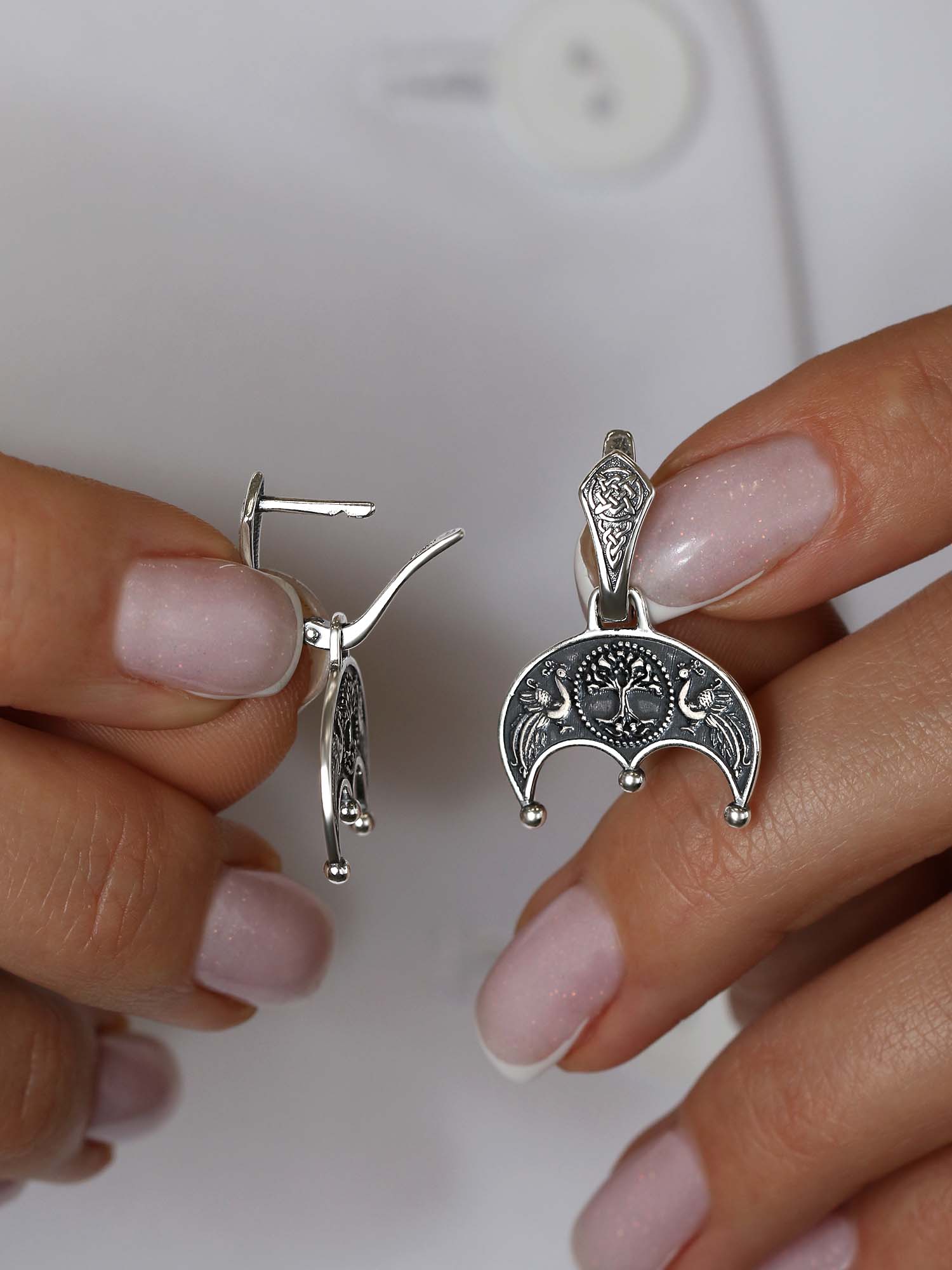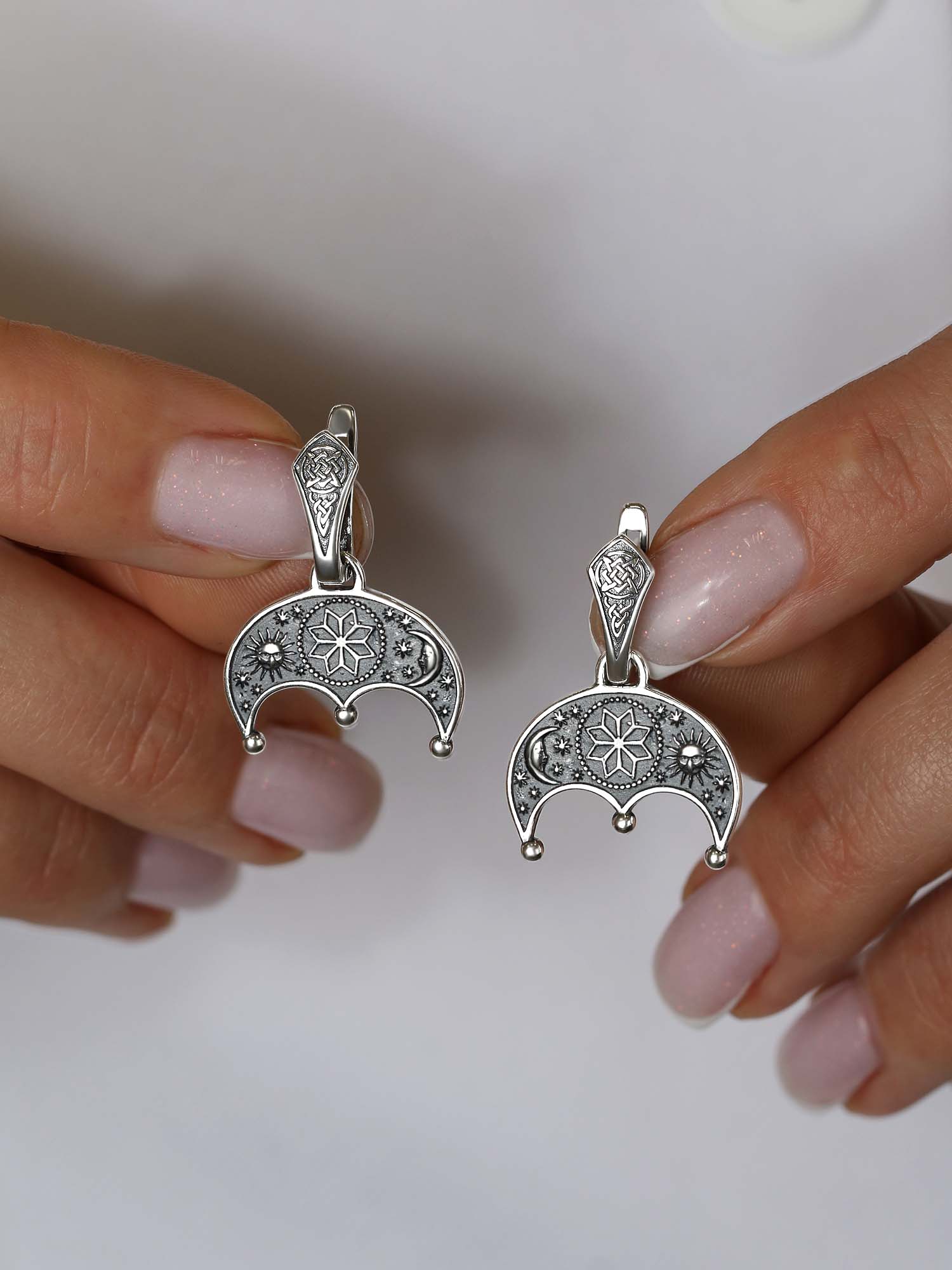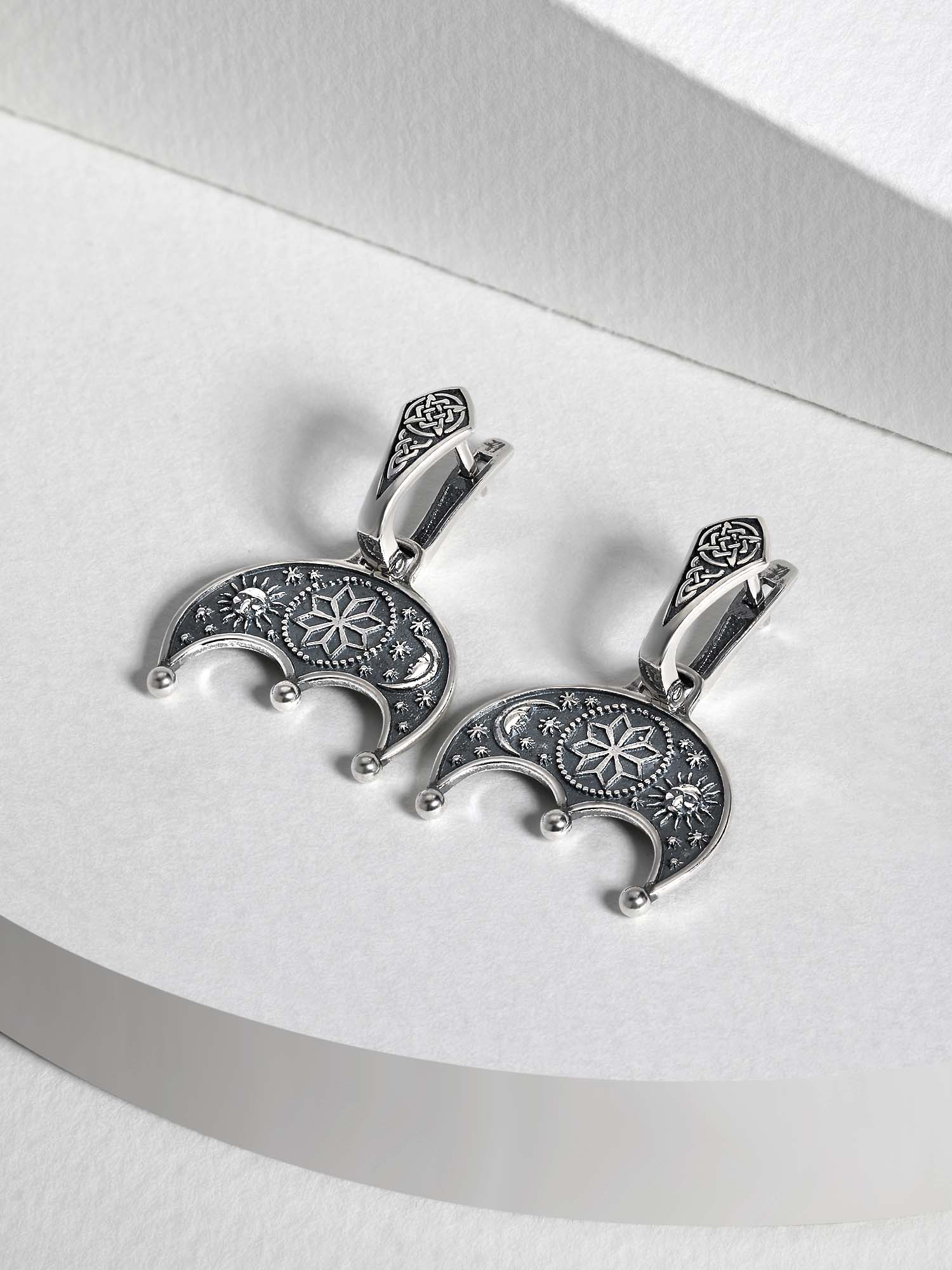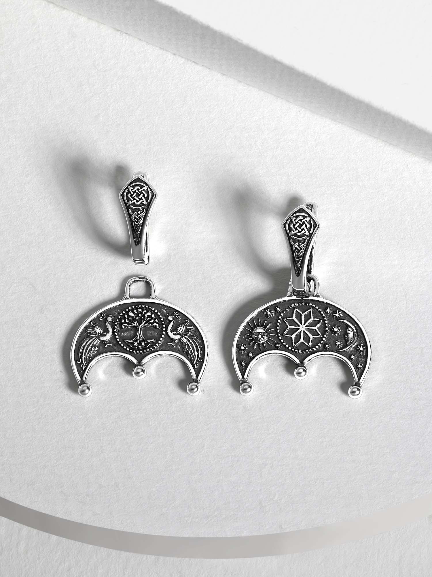 Серьги двусторонние из чернёного серебра - Лунница (2в1)
