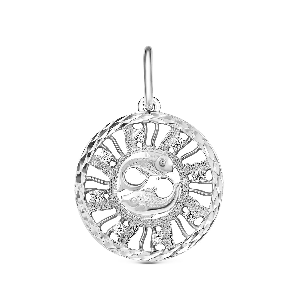 Подвеска из серебра с фианитами и алмазной огранкой родированная - Рыбы
