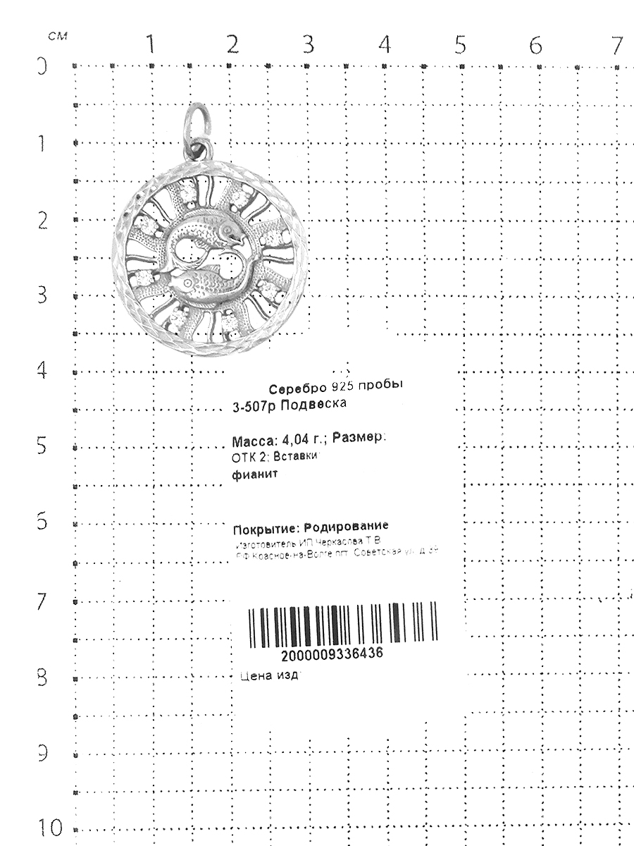 Подвеска из серебра с фианитами и алмазной огранкой родированная - Рыбы 3-507р