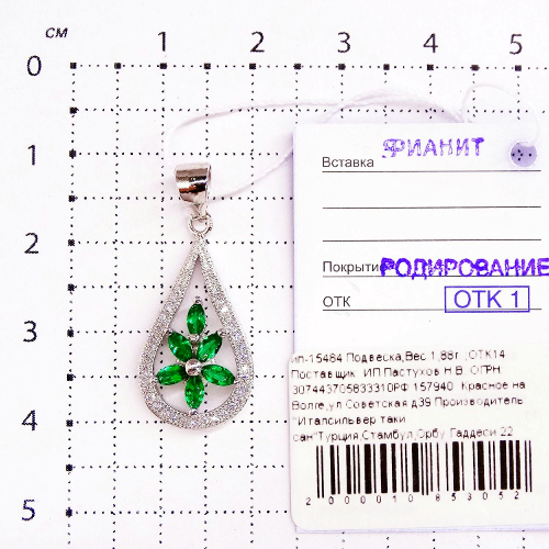 Подвеска из серебра с фианитами родированная ип-15484 зеленый