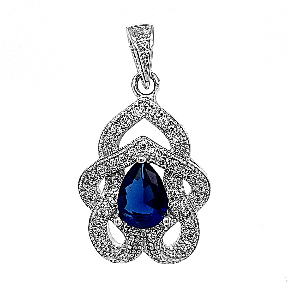 Подвеска из серебра с фианитами родированная