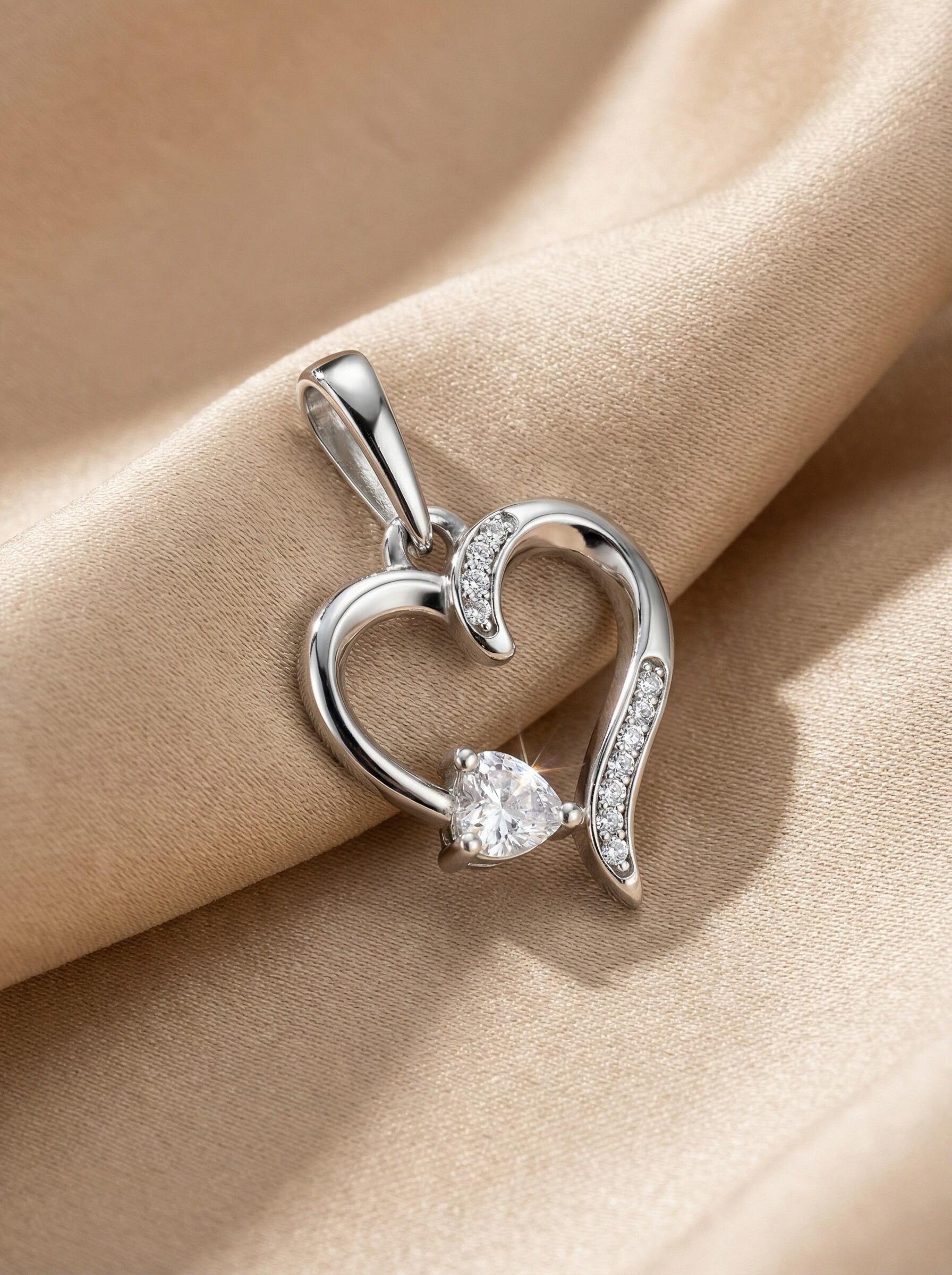 Подвеска из серебра с фианитами родированная