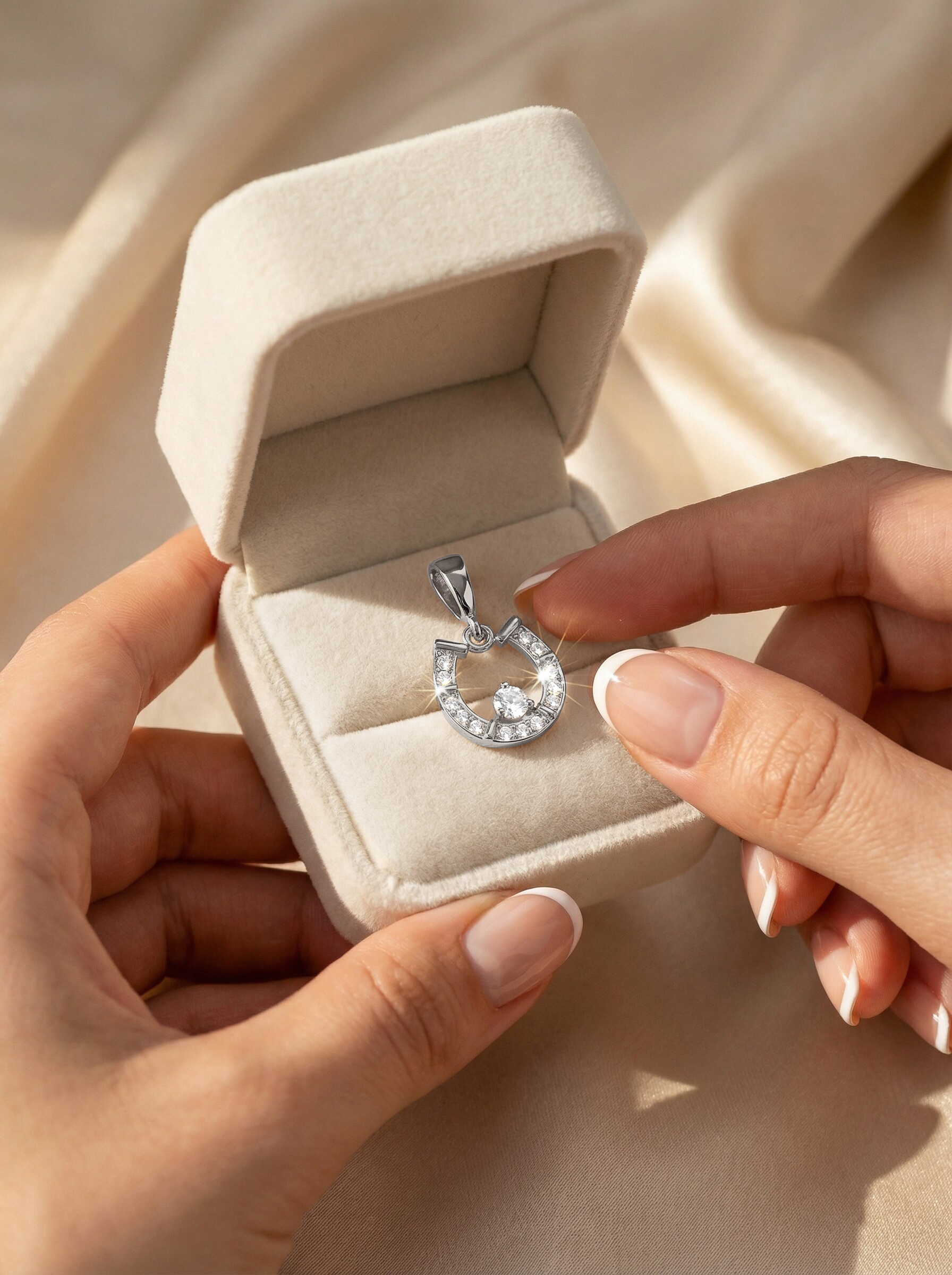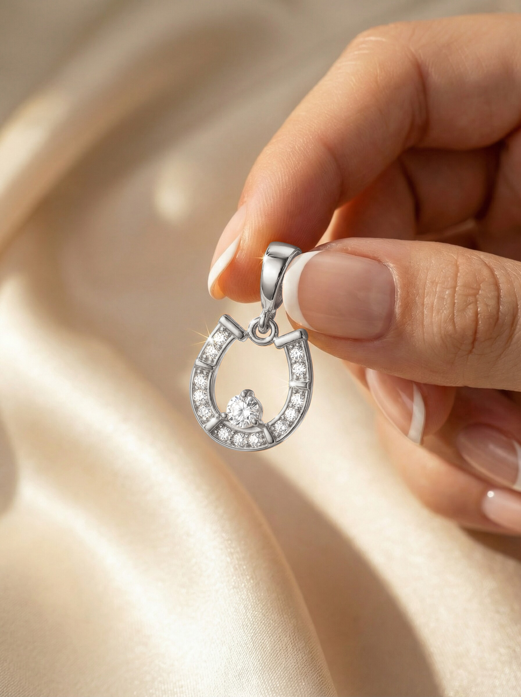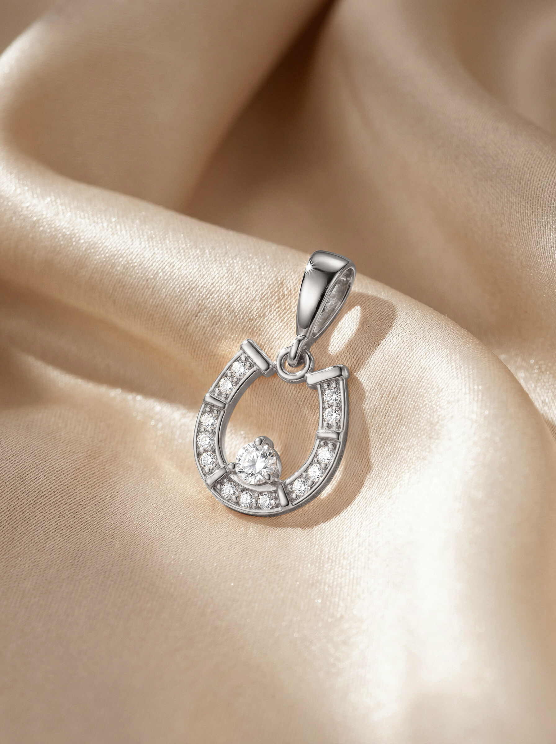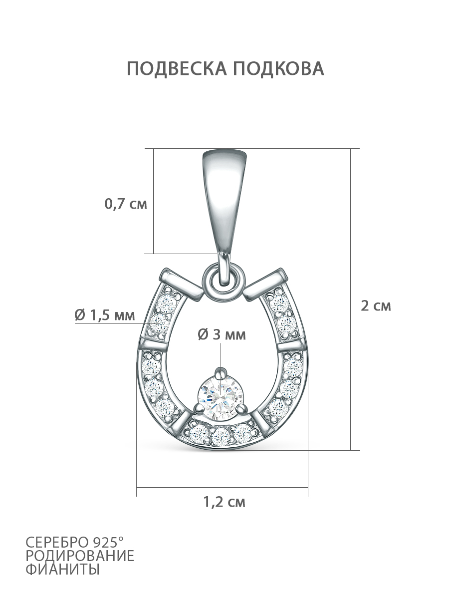 Подвеска из серебра с фианитами родированная - Подкова 925 пробы п-735р200