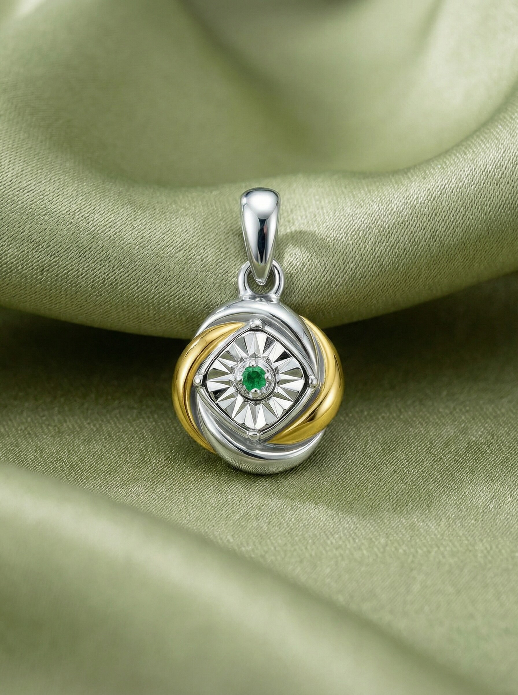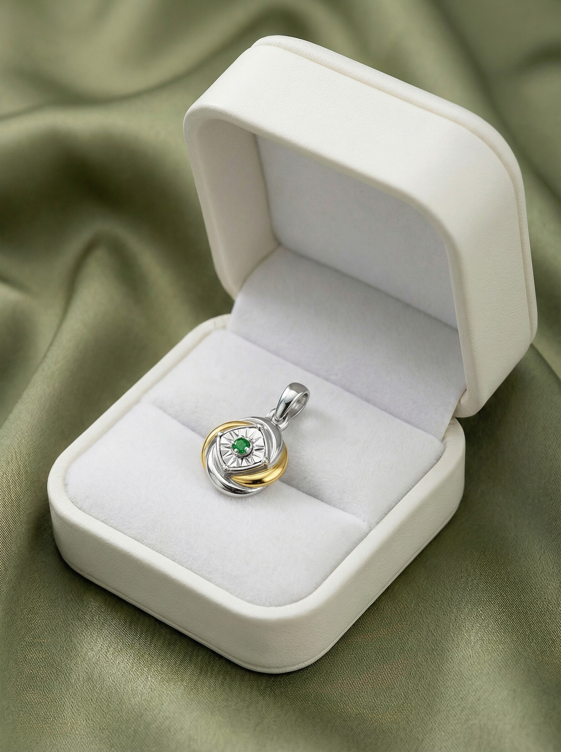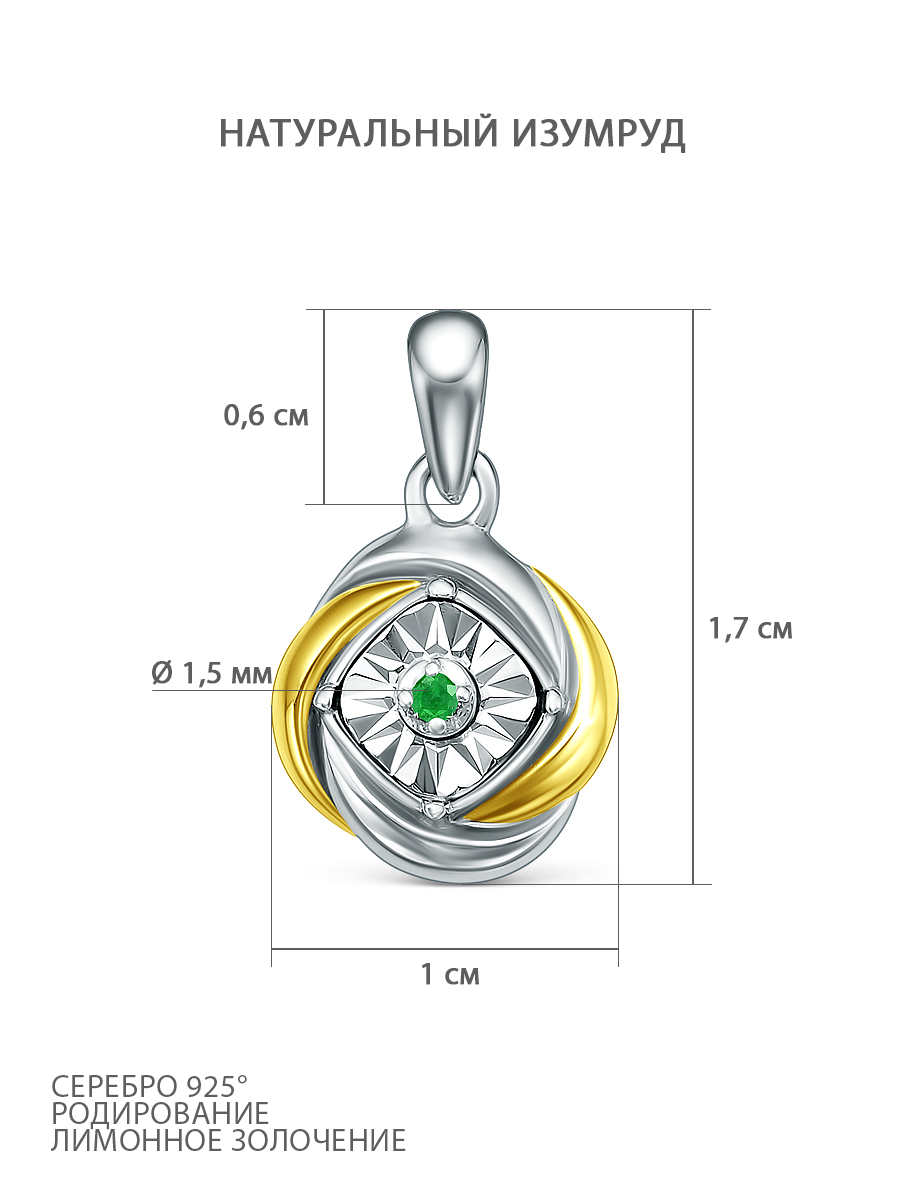 Подвеска из серебра с изумрудом и лимонным золочением родированная