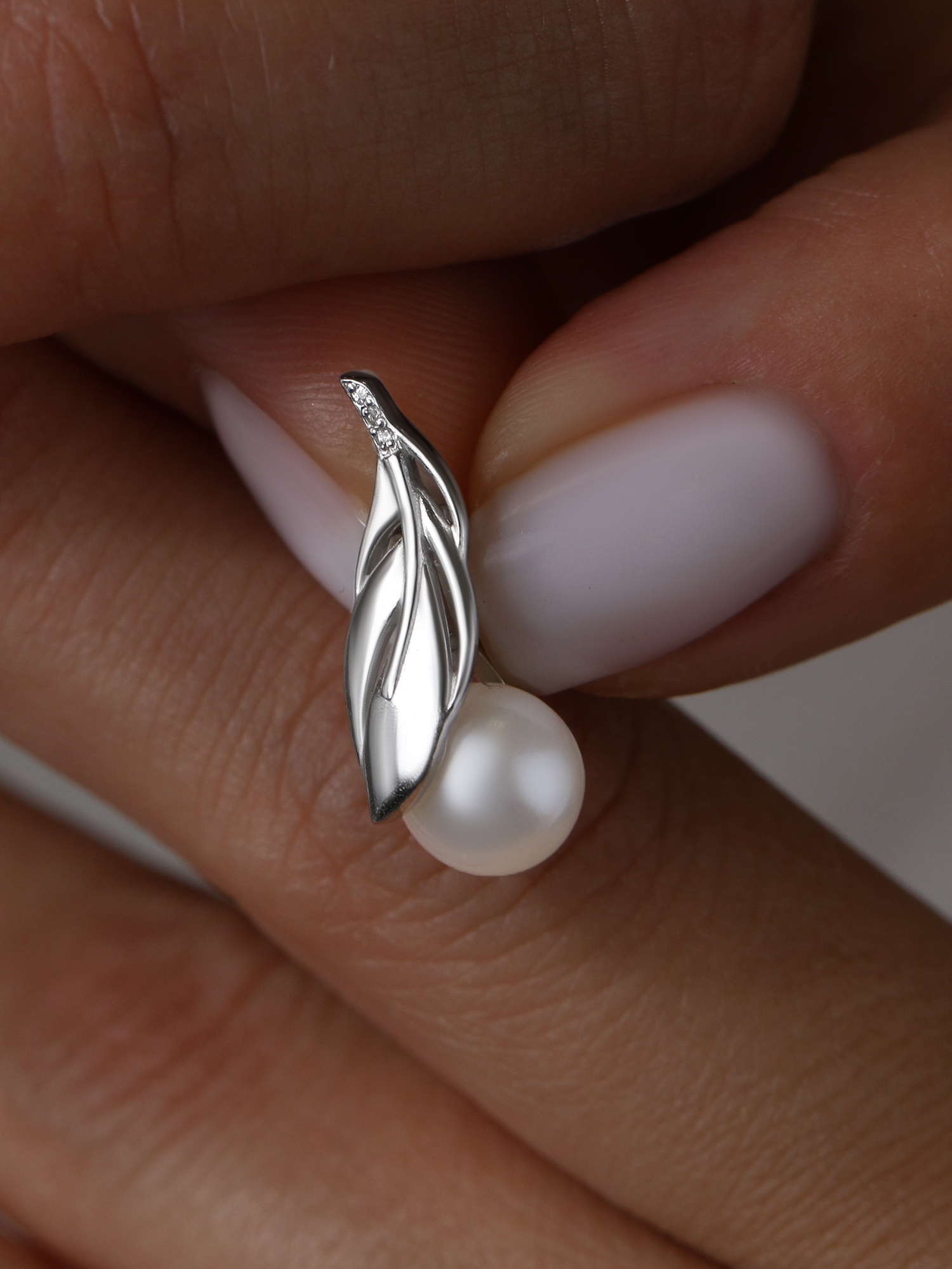 Подвеска из серебра с культивированным жемчугом и фианитами родированная