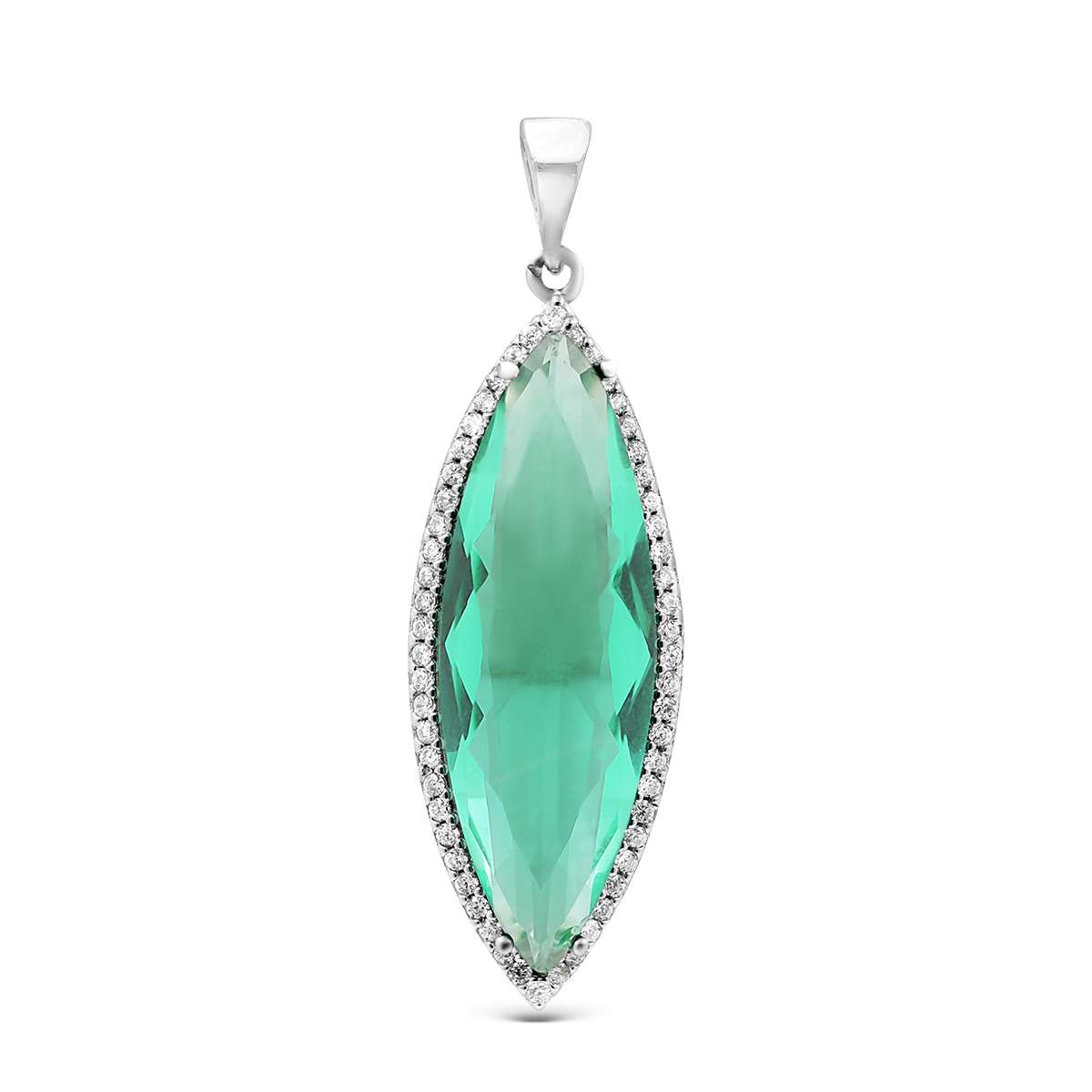 Подвеска из серебра с пл. зеленым кварцем и фианитами родированная