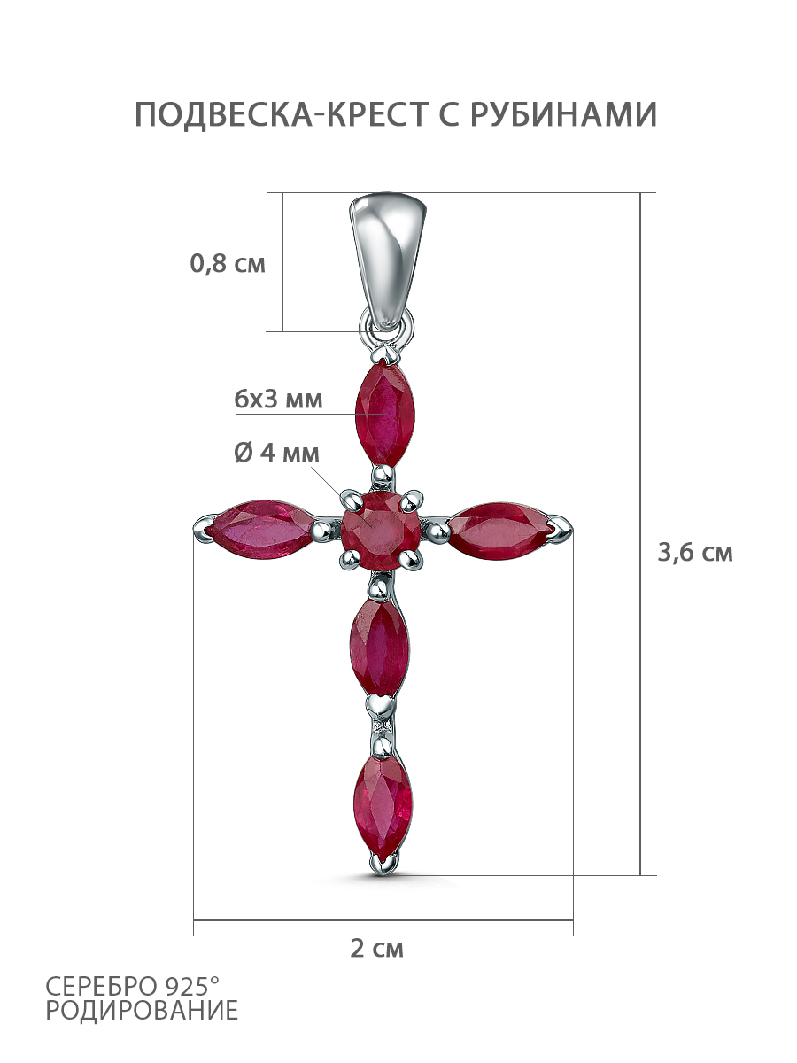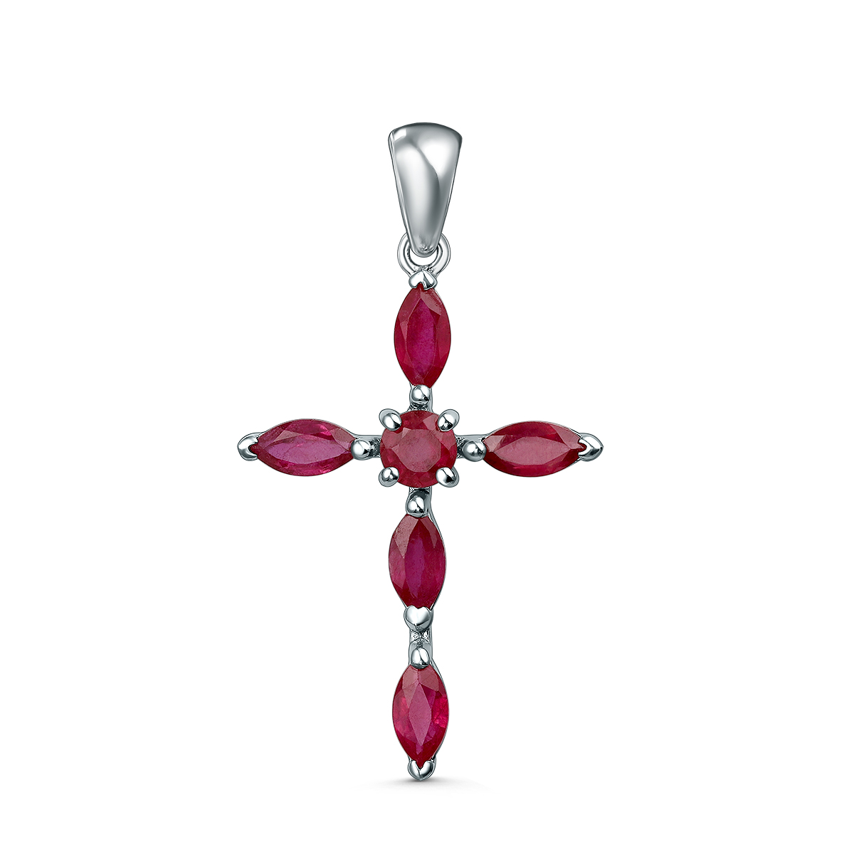 Подвеска-крест из серебра с рубинами родированная GTPJ-259-R
