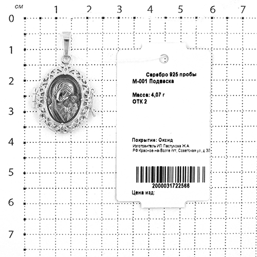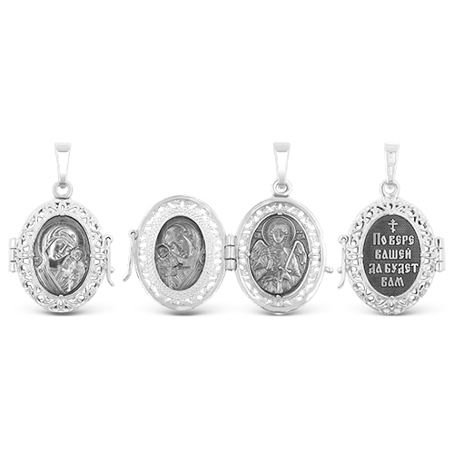 Подвеска-складень из серебра с чернением - Казанская БМ и Ангел-Хранитель М-001