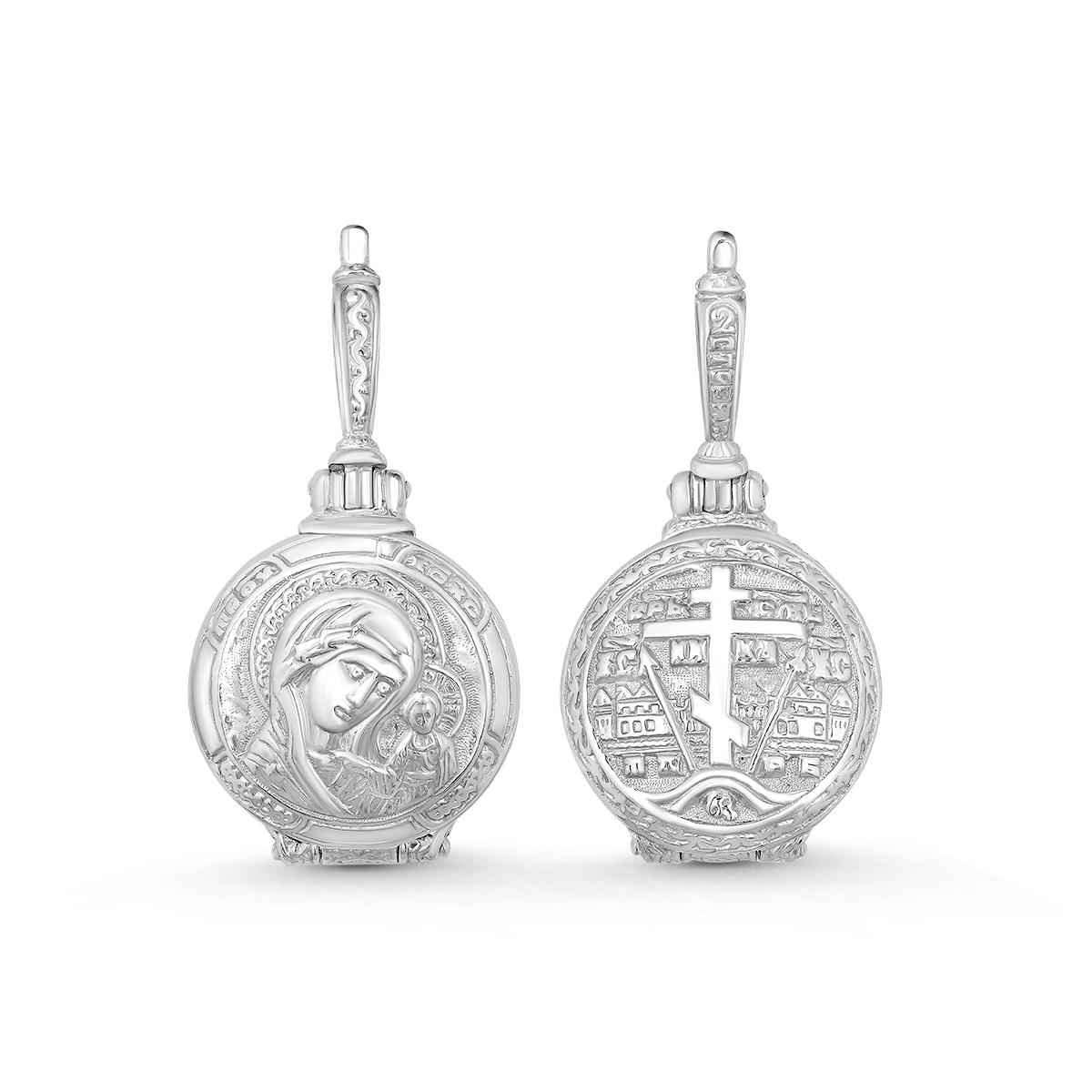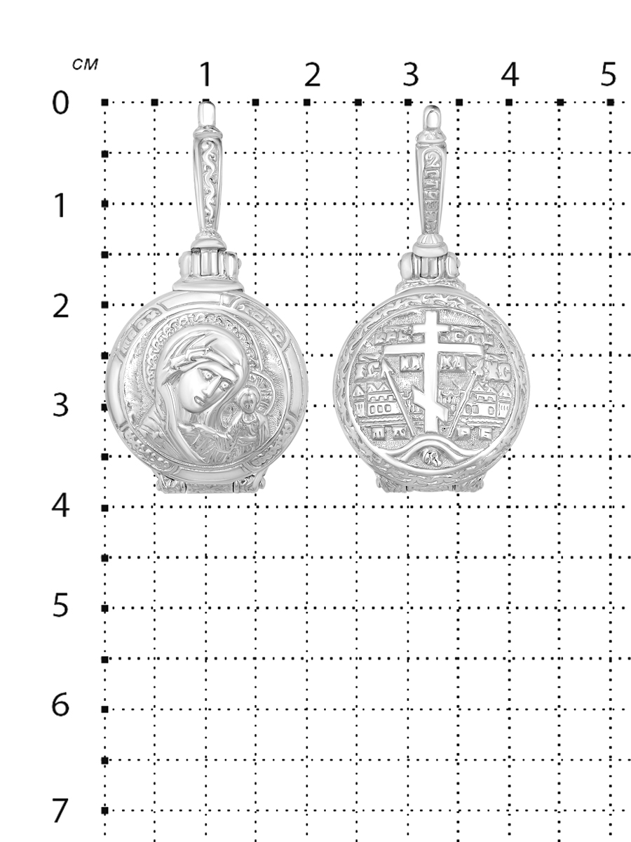 Складень религиозный из родированного серебра - Казанская БМ