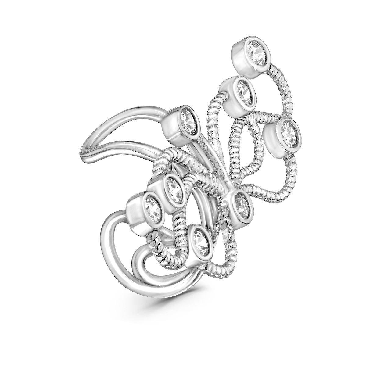 Серьга-кафа из серебра с фианитами родированная ис-149119