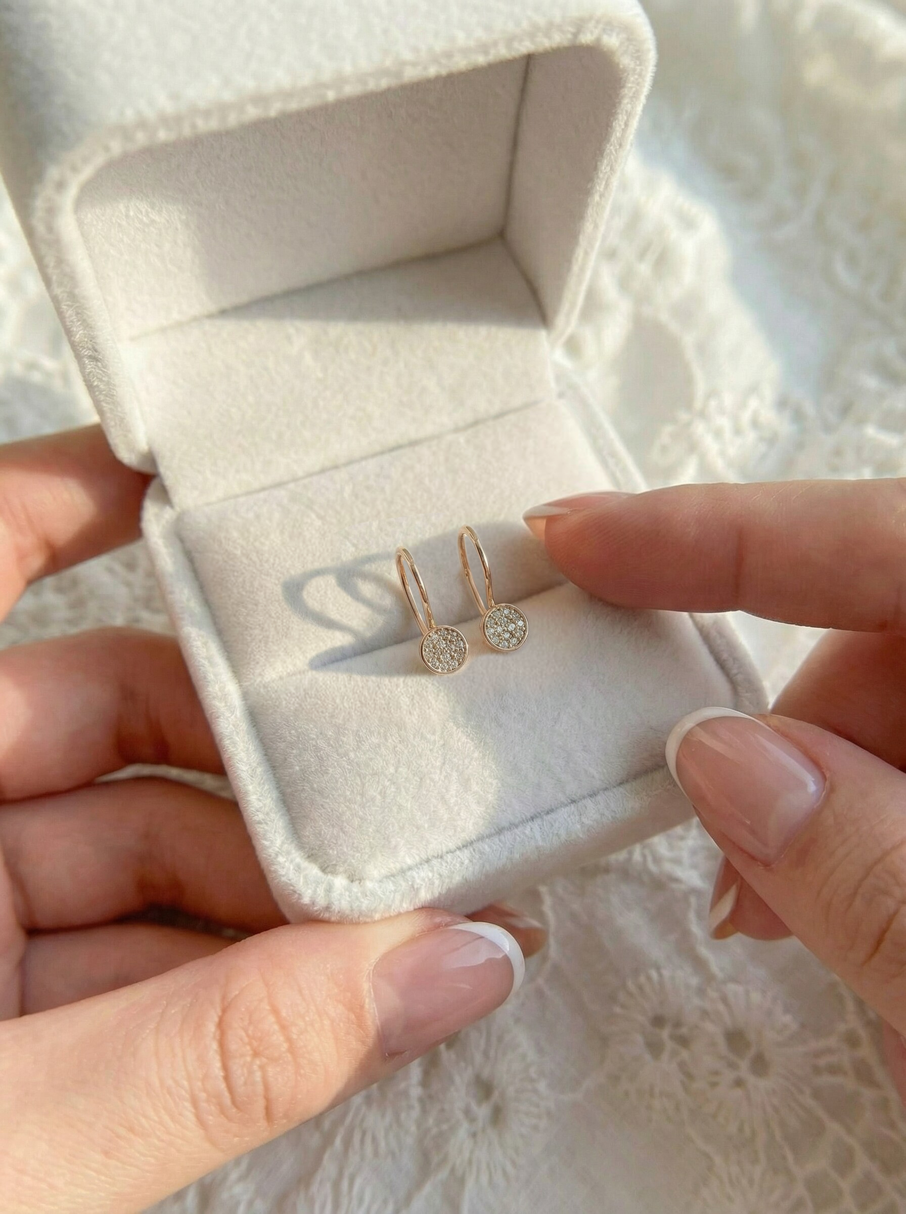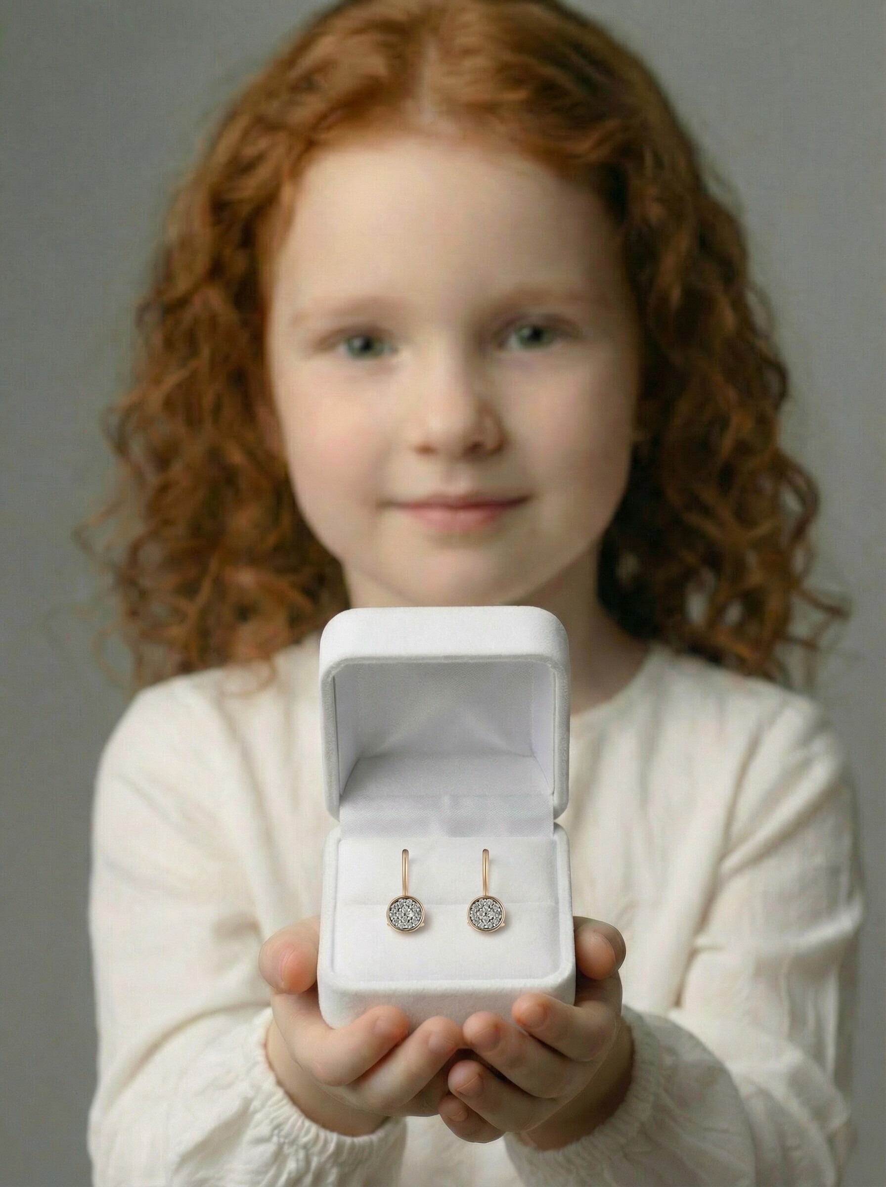 Серьги детские на петле из золочёного серебра с фианитами