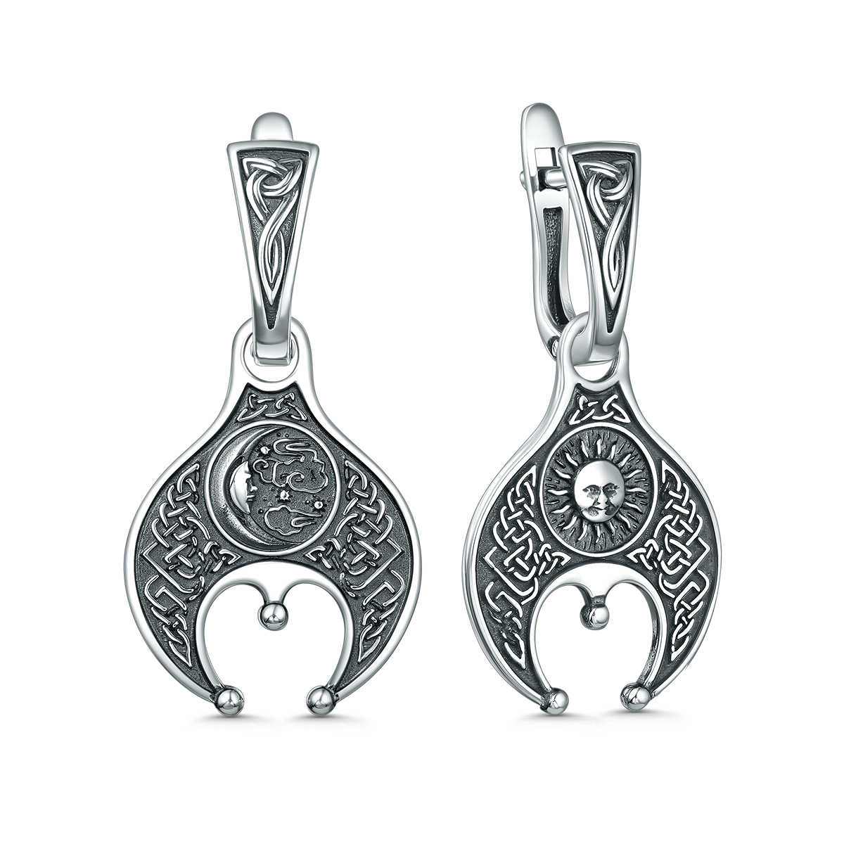 Серьги двусторонние из чернёного серебра - Лунница (2в1)