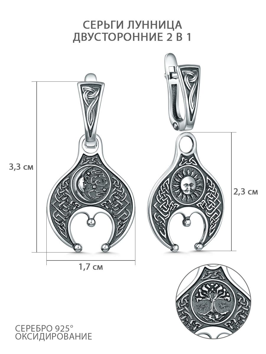Серьги двусторонние из чернёного серебра - Лунница (2в1) 2100062