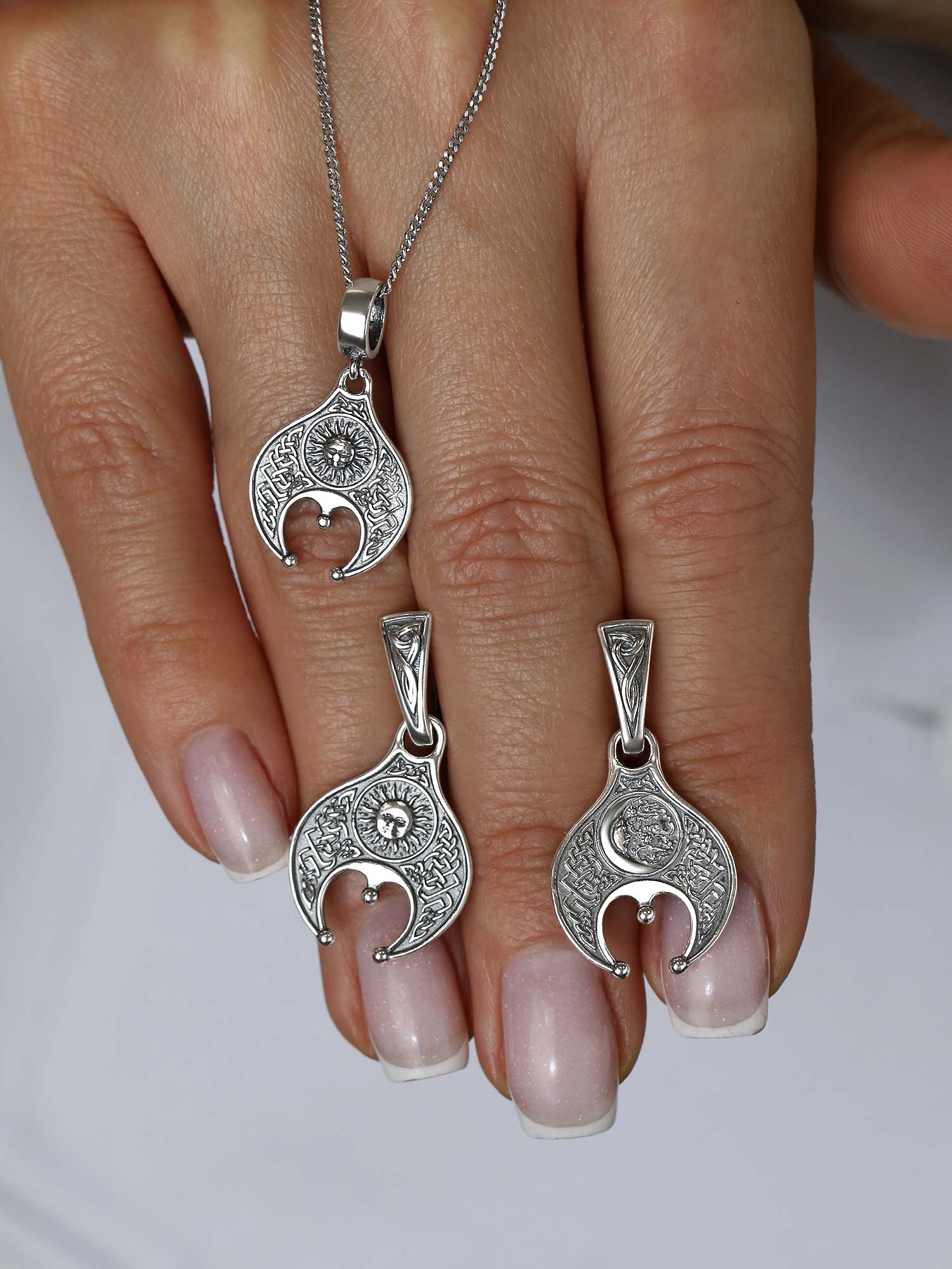Подвеска двусторонняя из чернёного серебра - Лунница