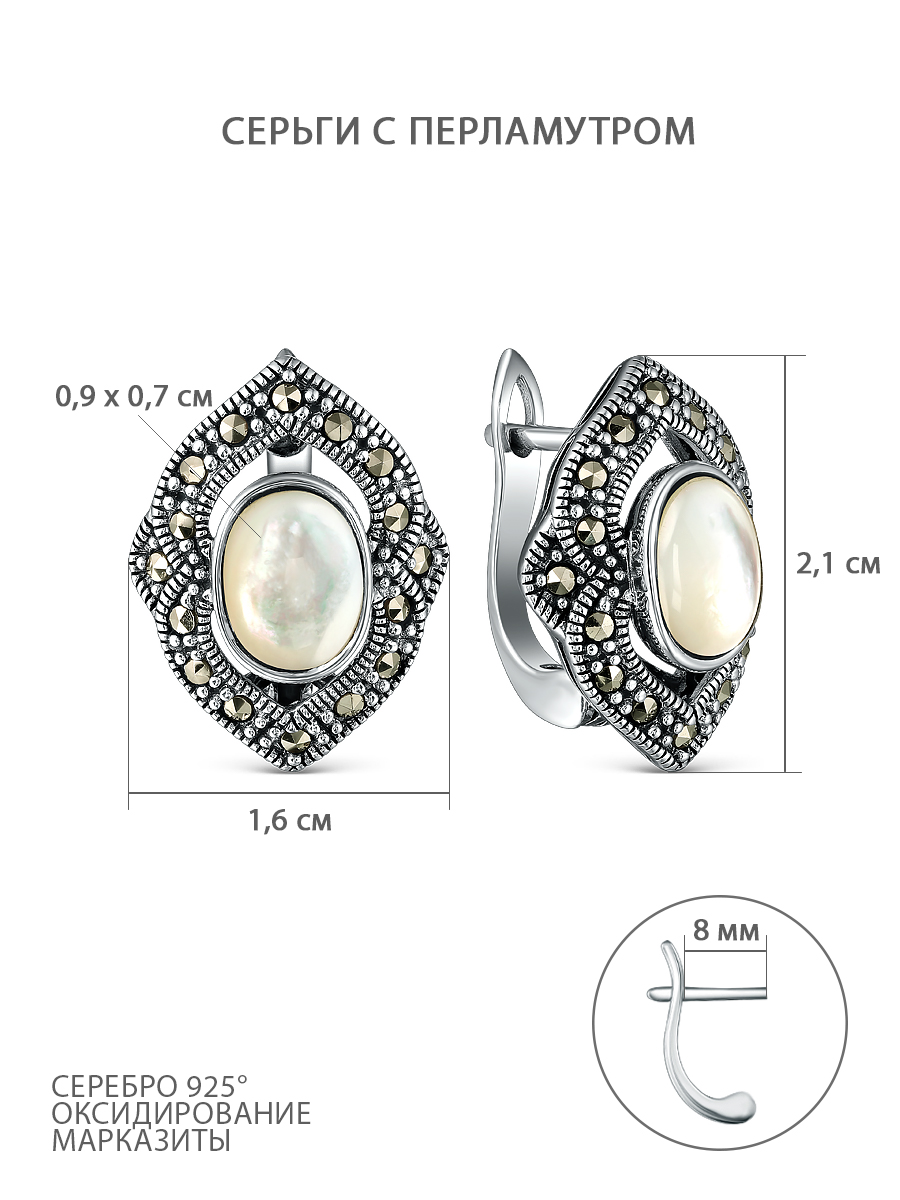 Серьги из чернёного серебра с перламутром и марказитами 925 пробы HR0335-MP-LK
