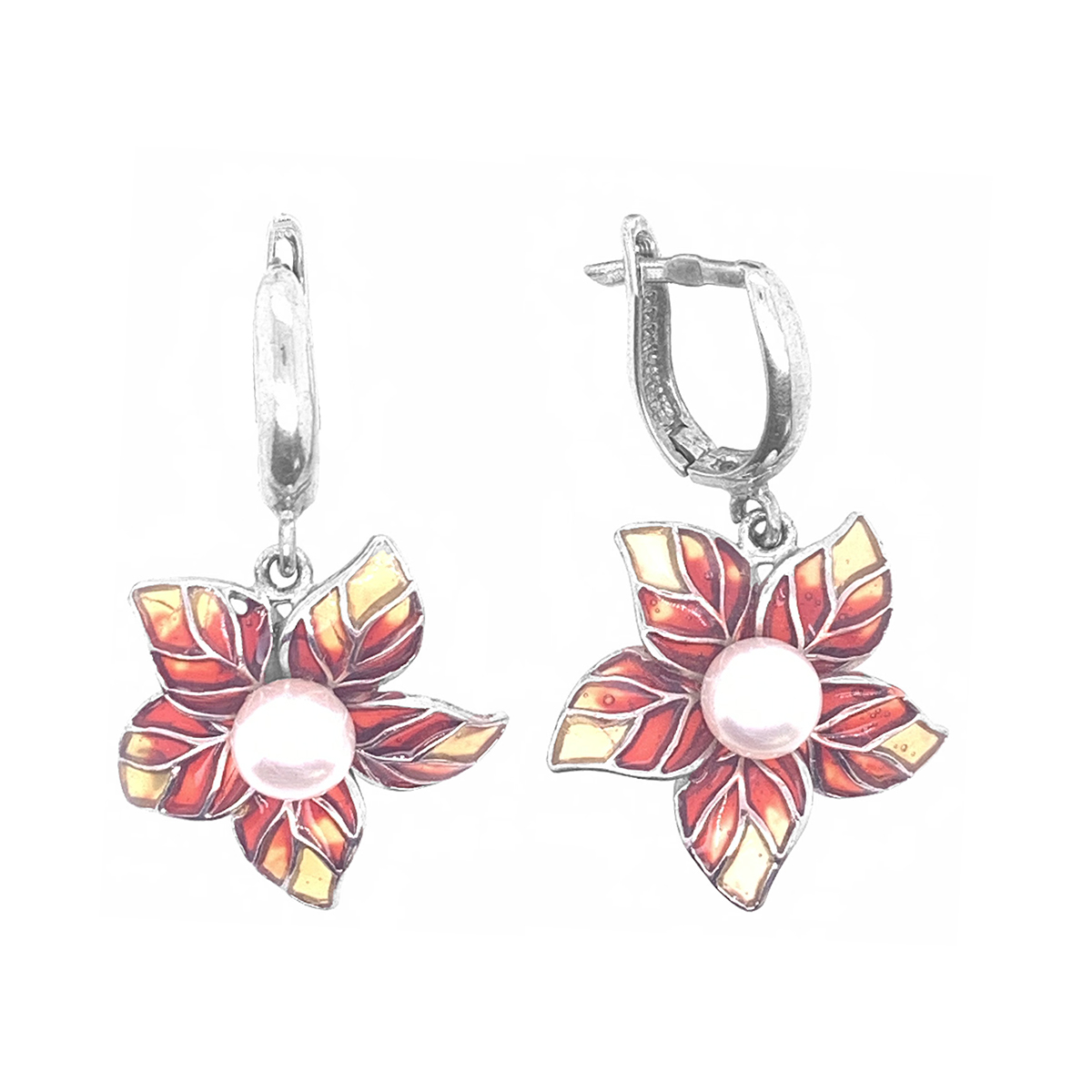 Серьги из родированного серебра с эмалью и жемчугом